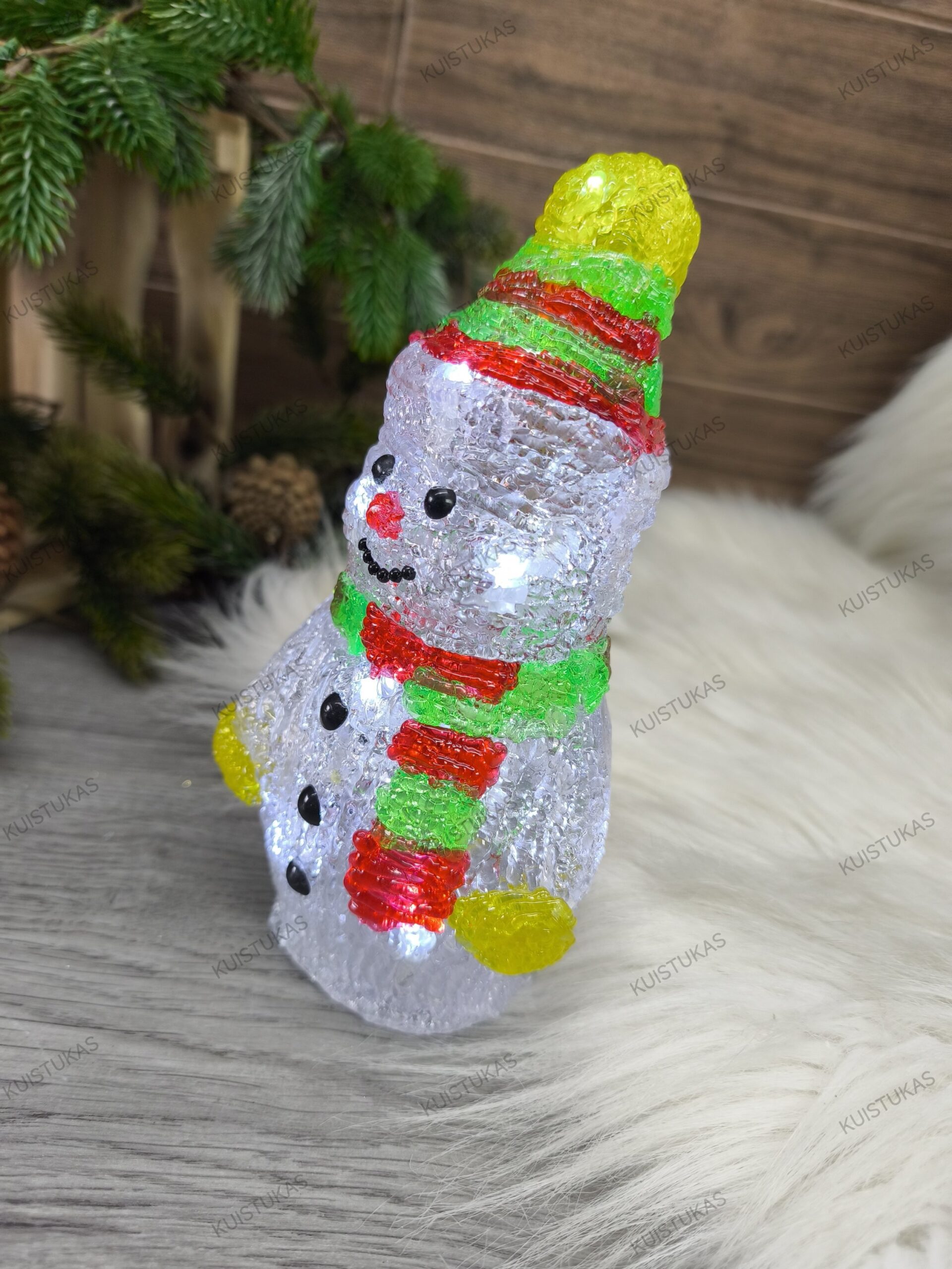 Akrilinė dekoracija „Snowy Friend“ – puikus pasirinkimas tiems, kurie nori papuošti savo erdvę spalvingu ir jaukiu šventiniu akcentu.