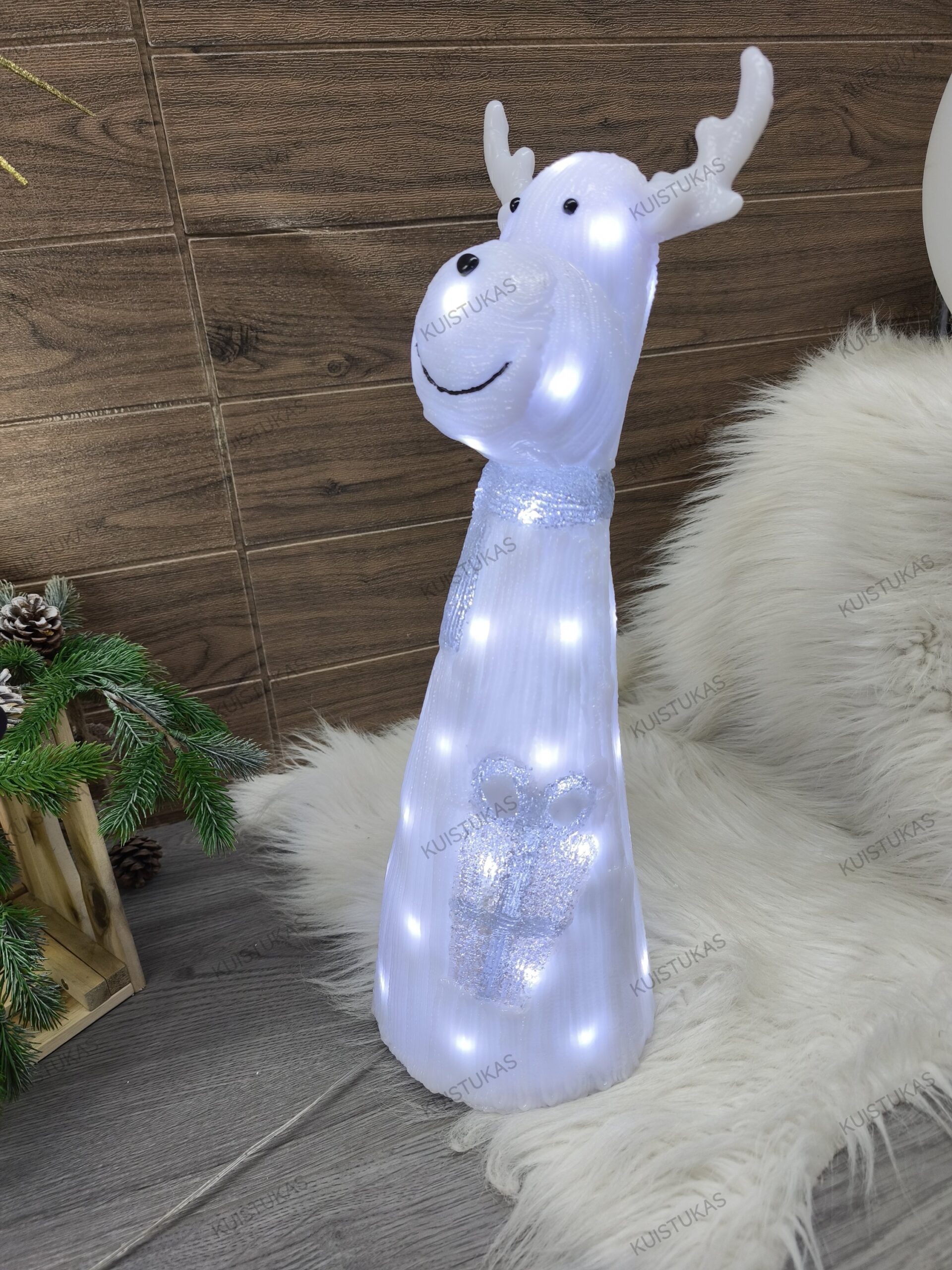 Akrilinė dekoracija „Švytintis elnias“ – tai išskirtinis šventinio interjero akcentas, sukuriantis jaukią ir elegantišką atmosferą jūsų namuose ar lauko erdvėje.