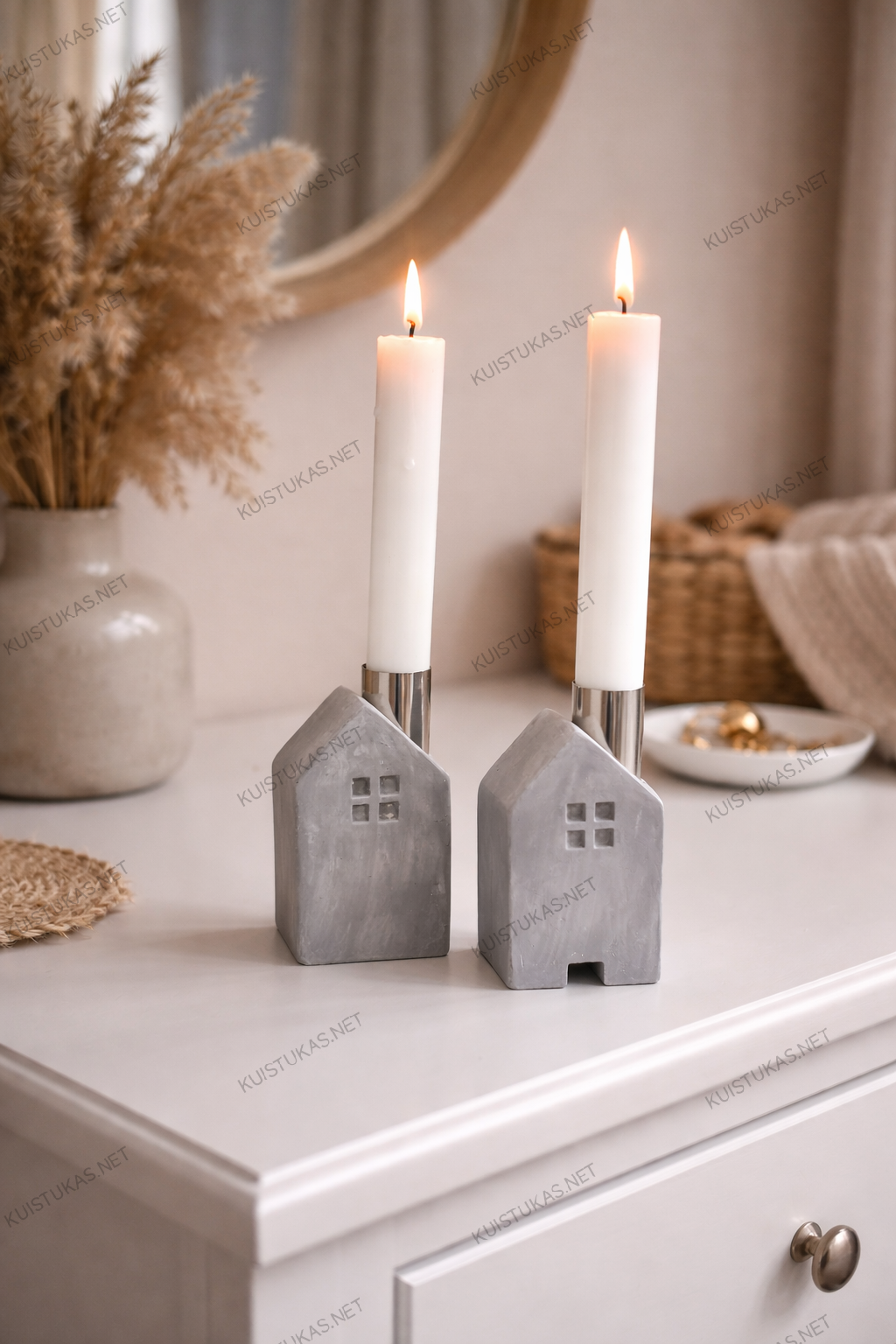 Betoninių žvakidžių rinkinys „Nameliai“ – tai moderni ir subtili interjero detalė, kuri jūsų namams jaukumo ir šilumos.