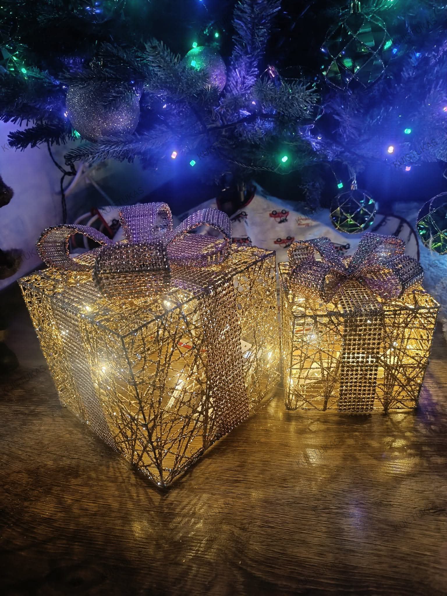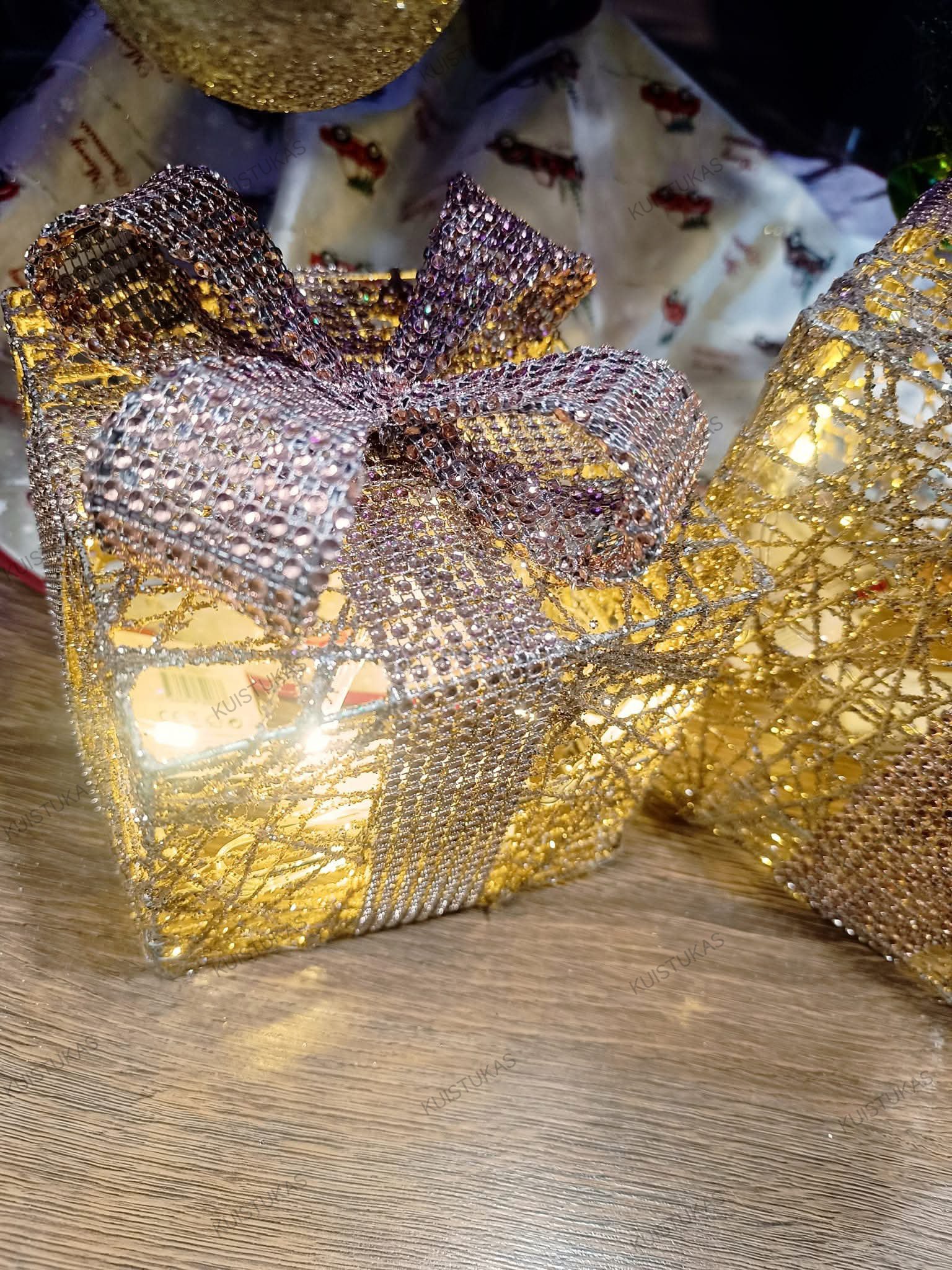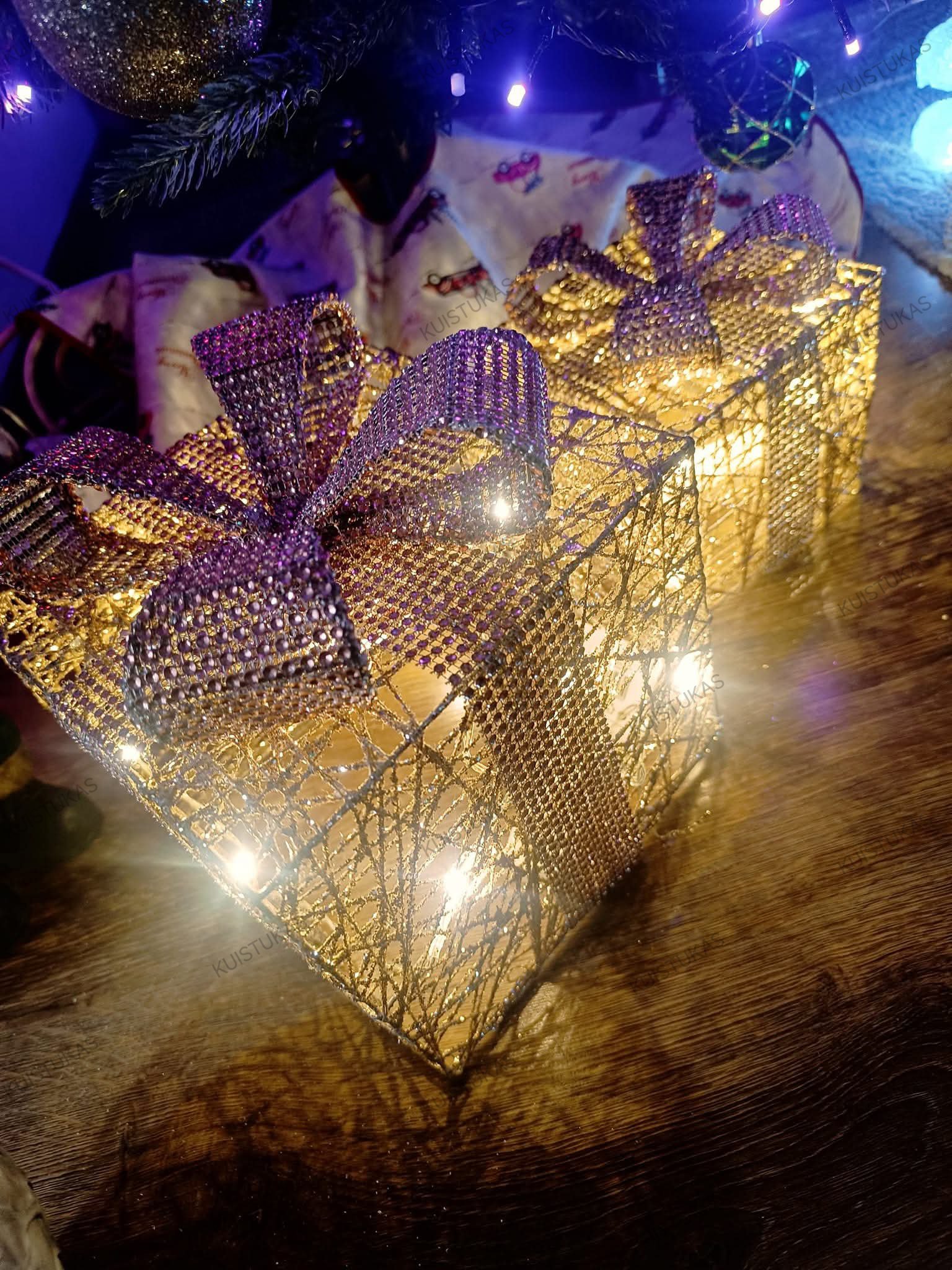 Blizganti konstrukcija su elegantišku kaspinu atrodo lyg tikra dovana, o viduje švelniai mirgančios LED lemputės kuria šilumą ir jaukumą.