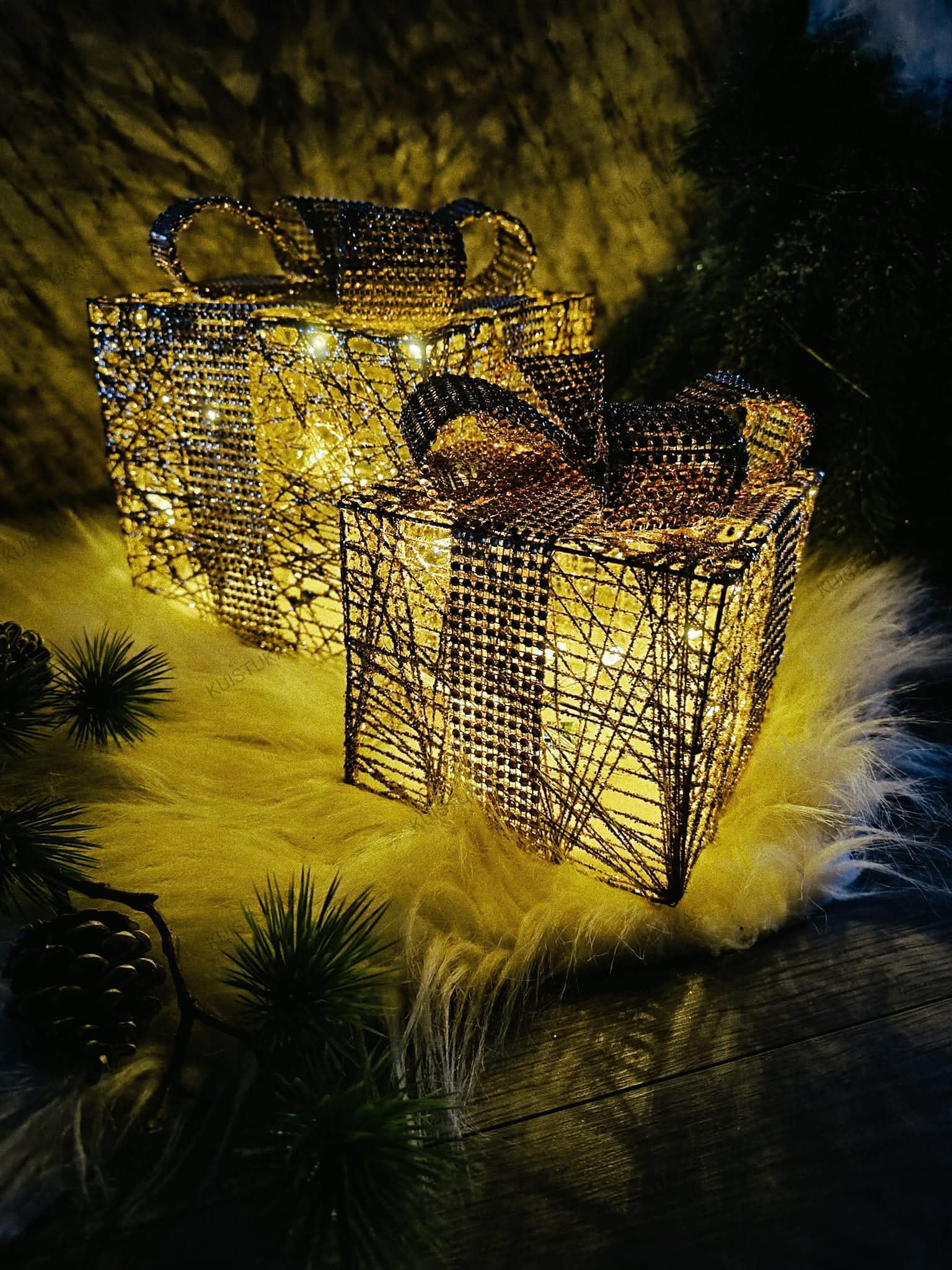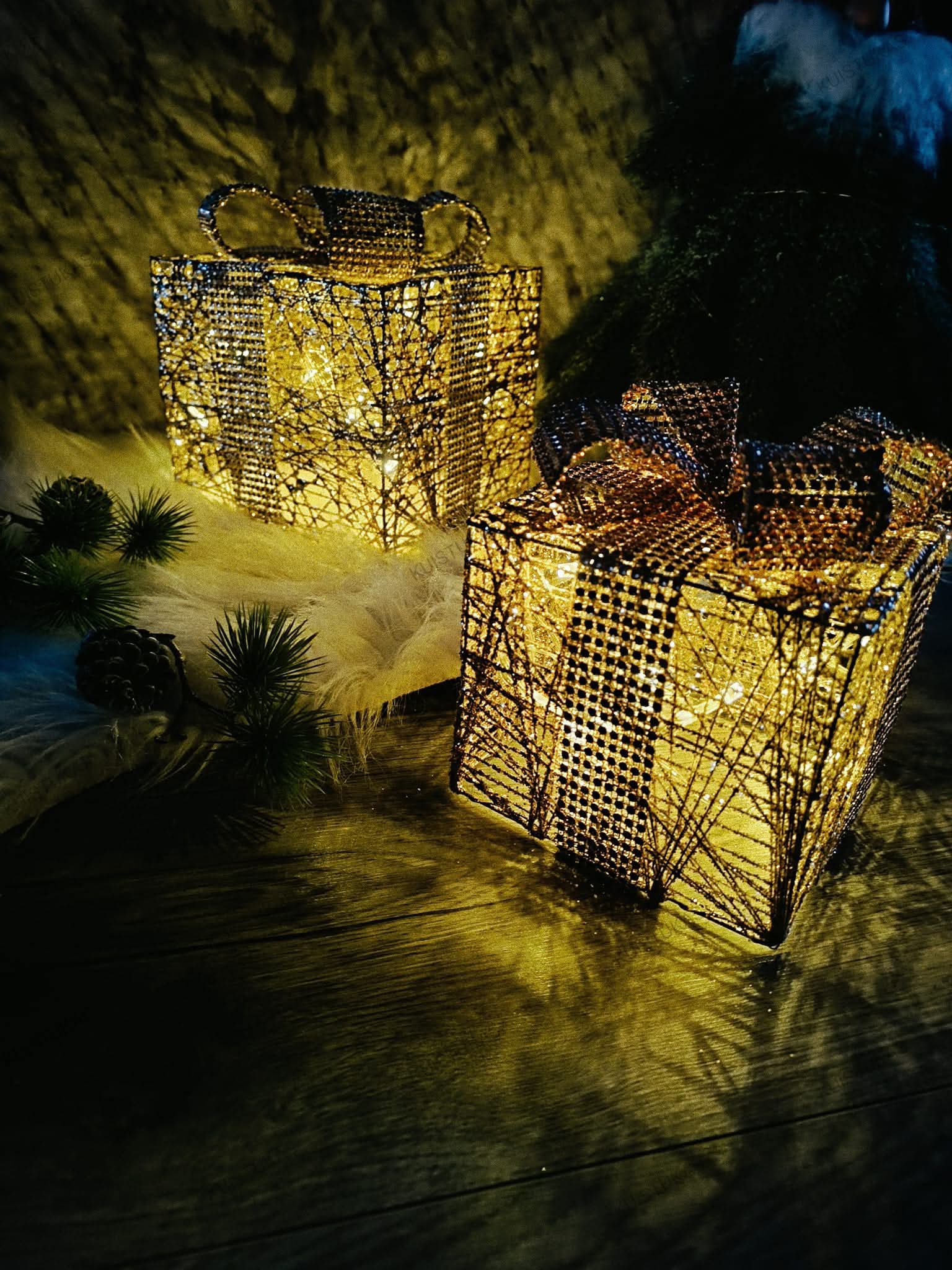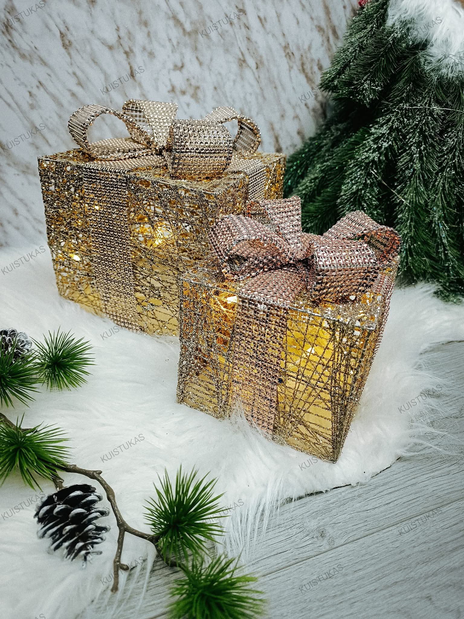 Blizganti konstrukcija su elegantišku kaspinu atrodo lyg tikra dovana, o viduje švelniai mirgančios LED lemputės kuria šilumą ir jaukumą.