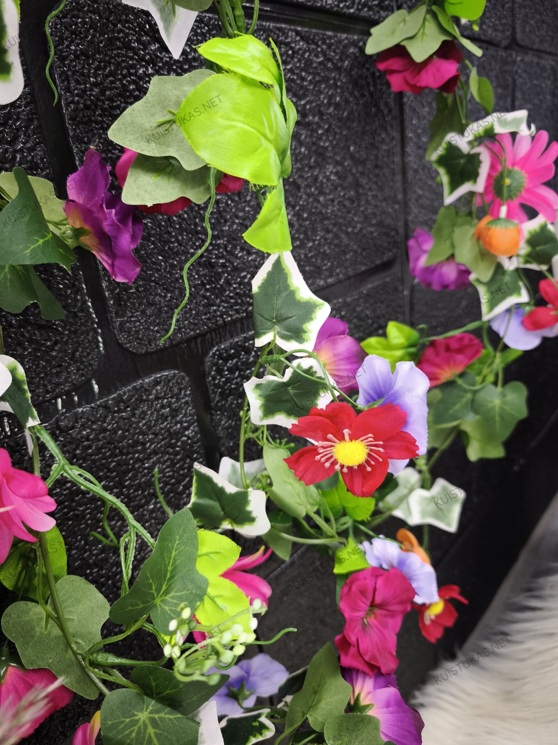 Dekoratyvinė gėlių girlianda suteikia galimybę greitai ir paprastai atnaujinti interjerą ar eksterjerą, suteikiant jam gyvybės ir spalvų.
