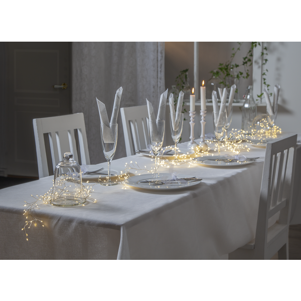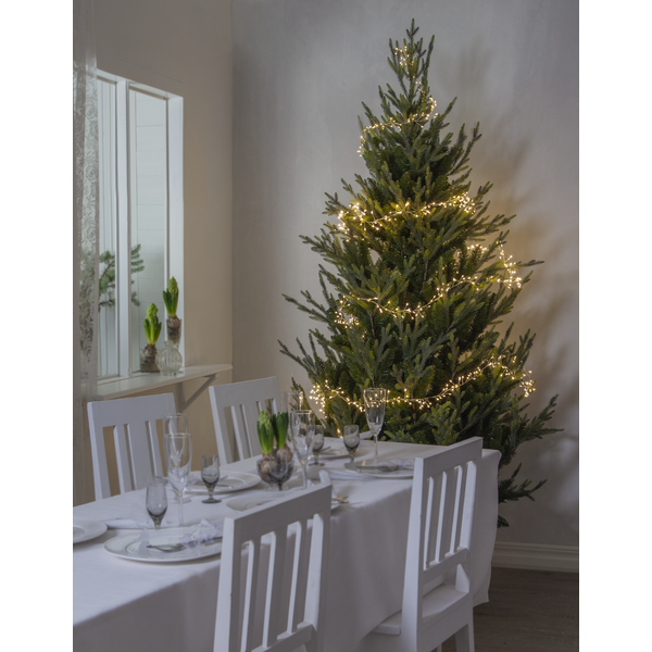 Dekoratyvinė „Dew Drop“ girlianda pasižymi ypatingu dizainu – ant sidabrinės spalvos vielutės išdėstytos net 720 LED švieselės, skleidžiančios švelnią dienos šviesos spalvą.