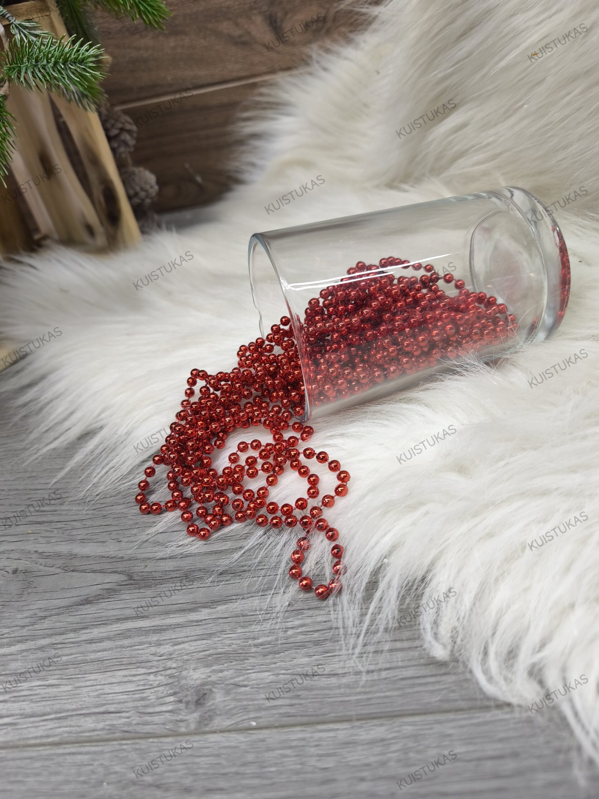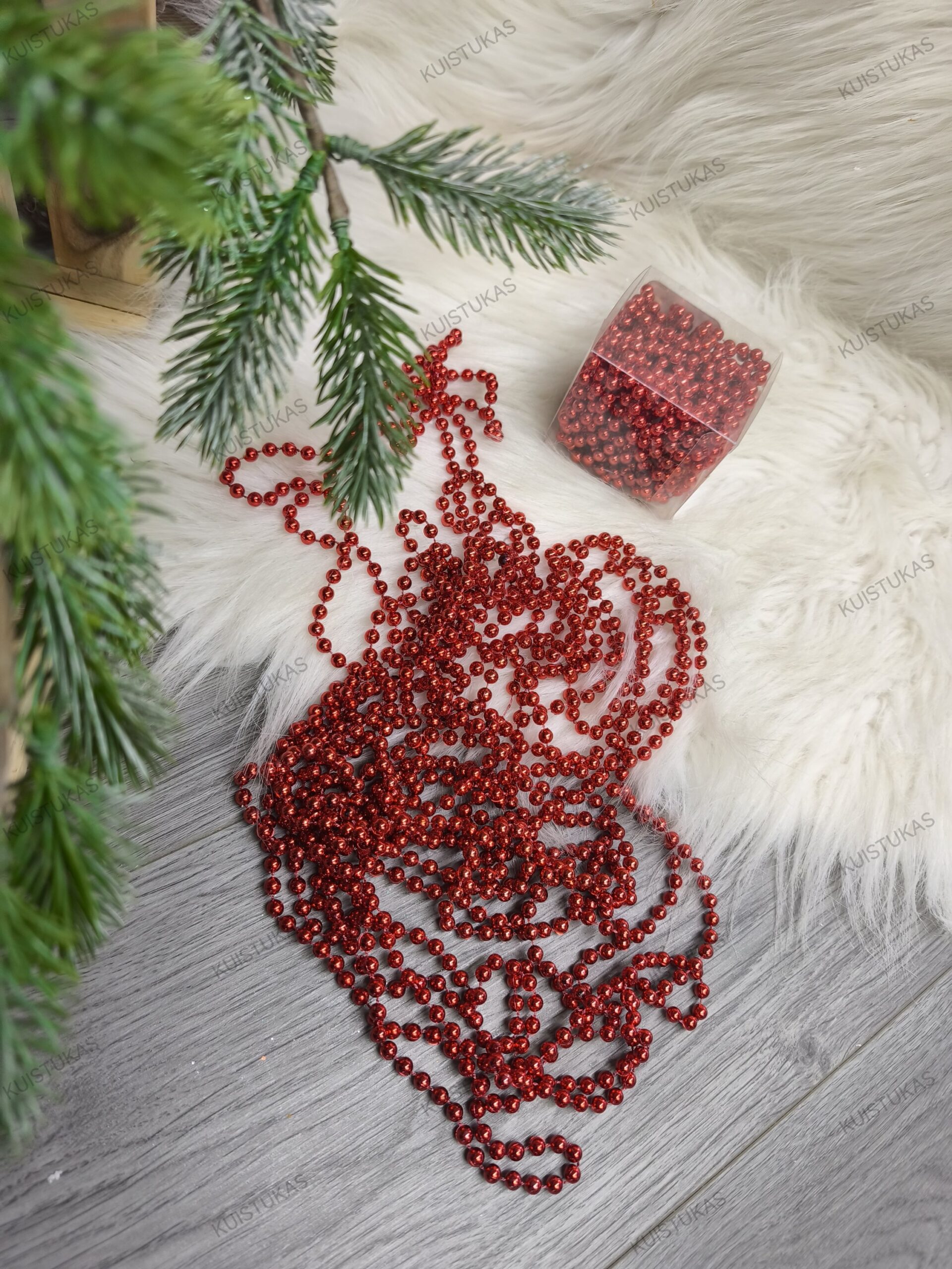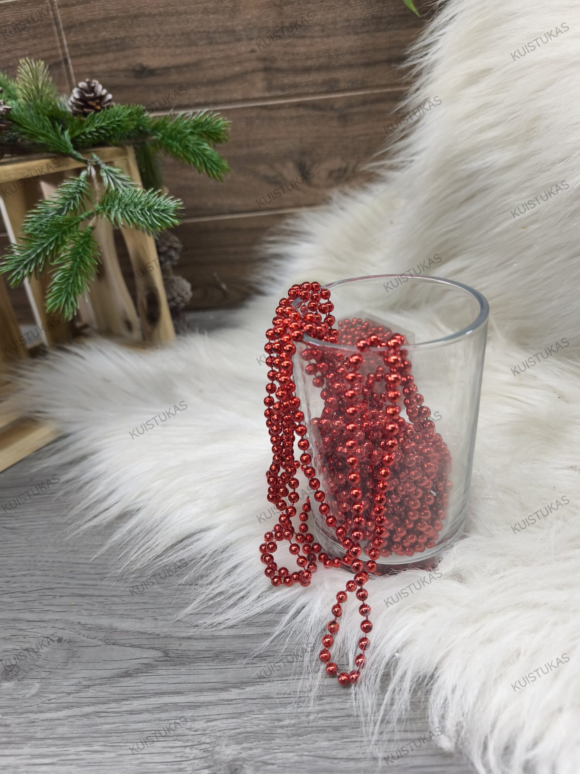8 metrų ilgio sodriai raudoni karoliukai suteikia išskirtinio žavesio ir jaukumo, puikiai dera tiek ant Kalėdų eglės, tiek puošiant židinio atbrailą, langus, stalo kompozicijas ar net dovanų įpakavimą.