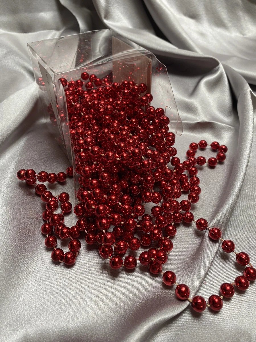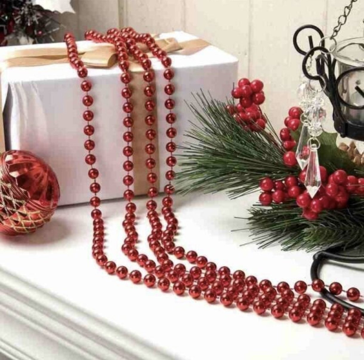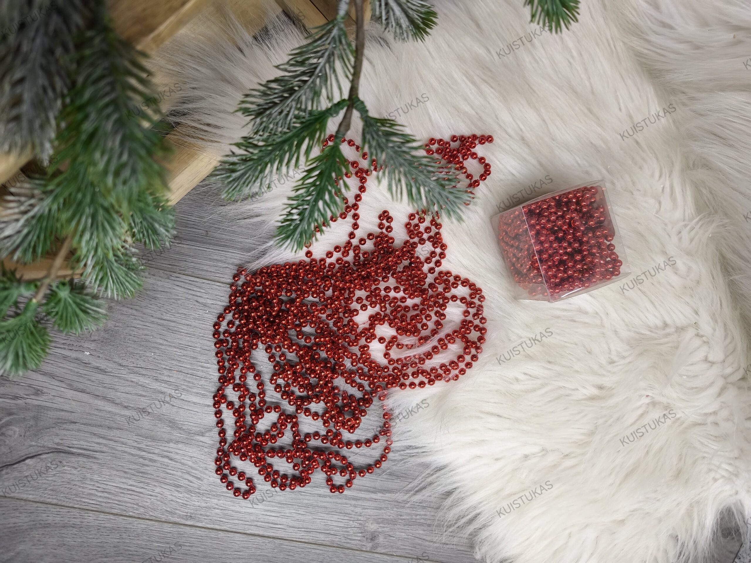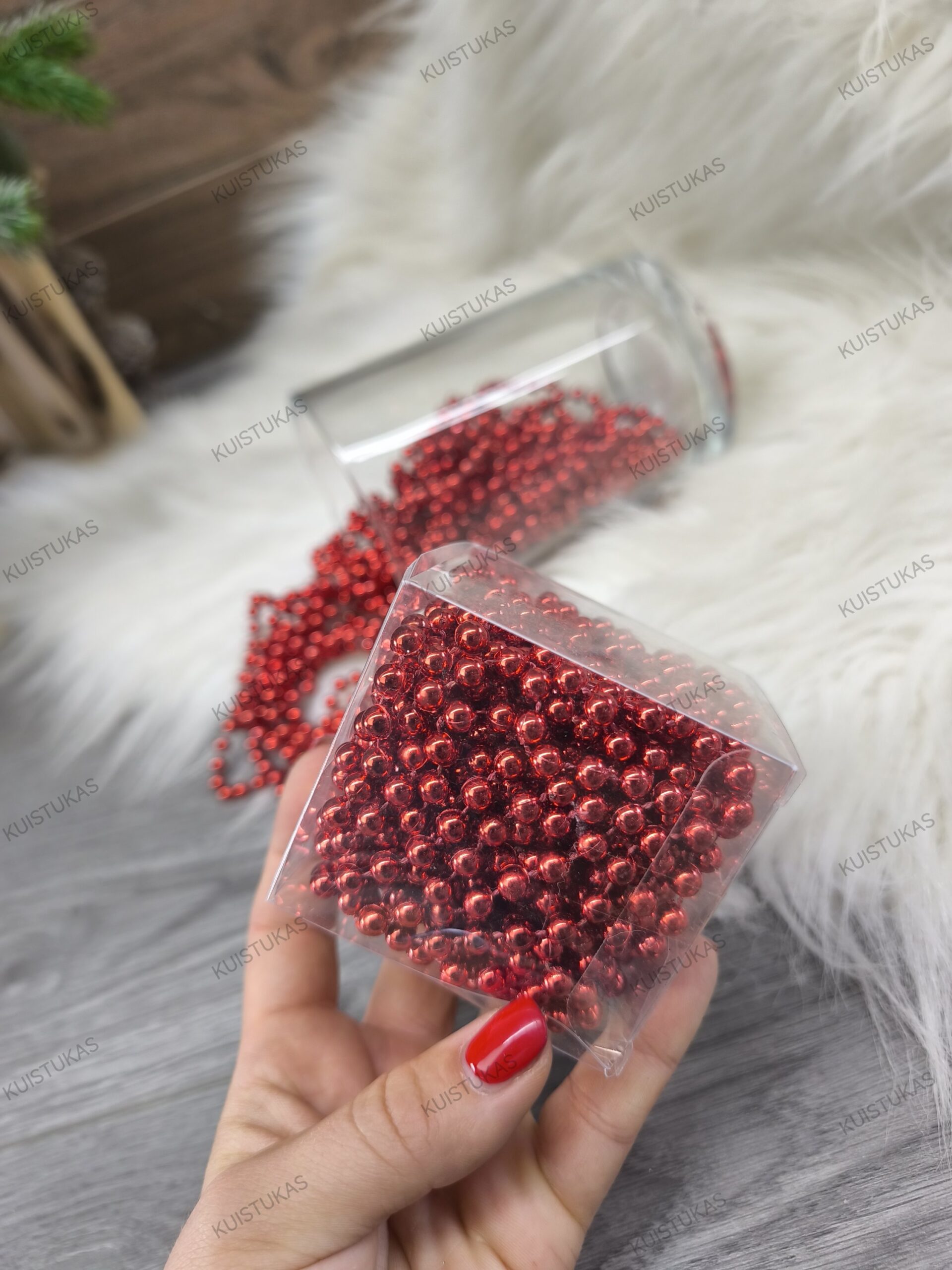 8 metrų ilgio sodriai raudoni karoliukai suteikia išskirtinio žavesio ir jaukumo, puikiai dera tiek ant Kalėdų eglės, tiek puošiant židinio atbrailą, langus, stalo kompozicijas ar net dovanų įpakavimą.