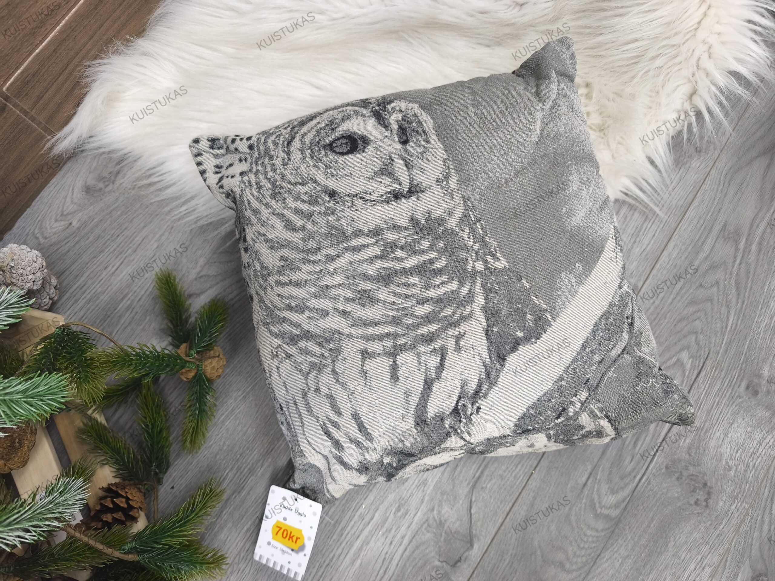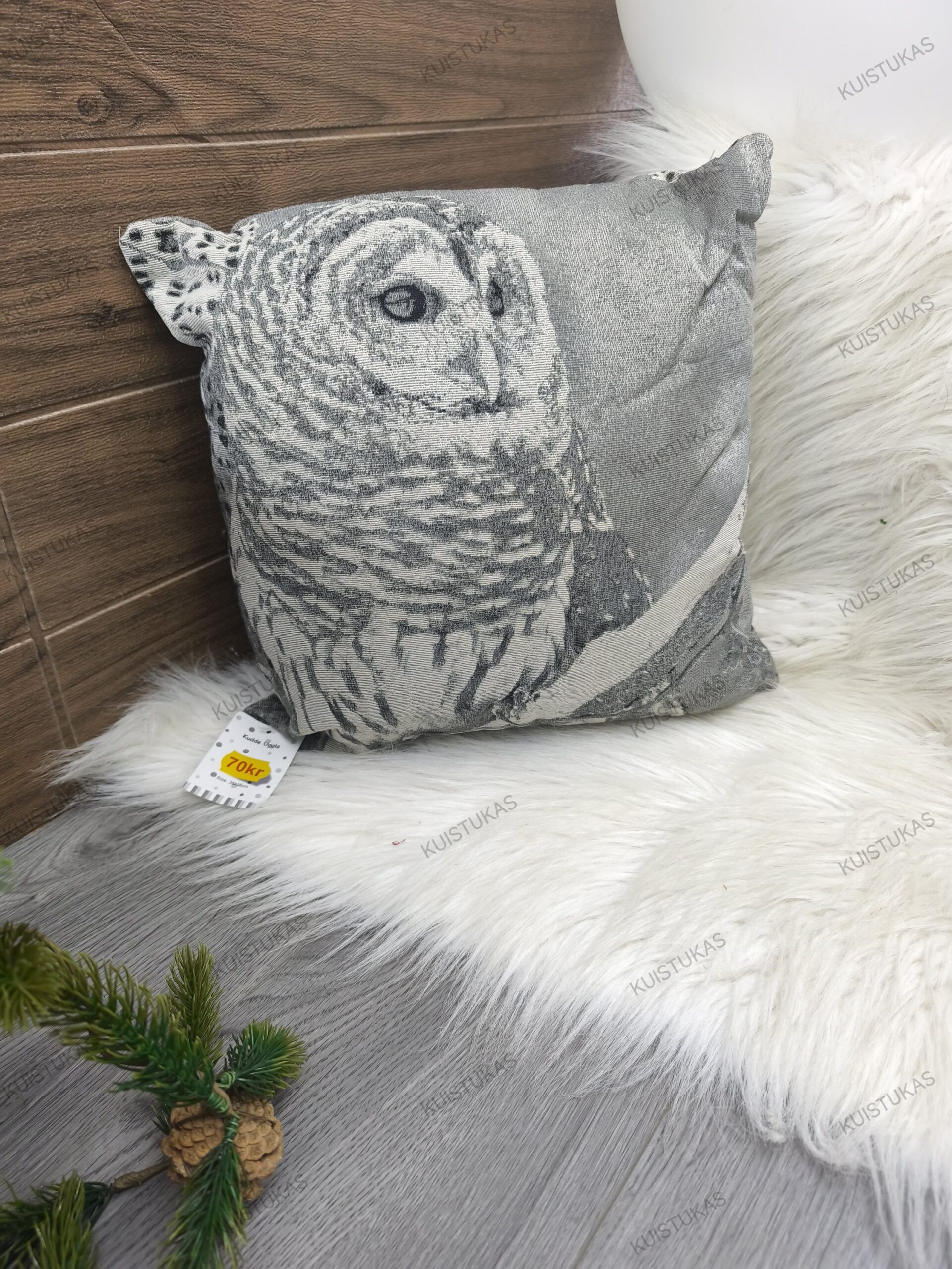 Dekoratyvinė pagalvė „Pelėda“ – tai stilingas ir jaukus akcentas, sukurtas jūsų namų interjerui pagyvinti.
