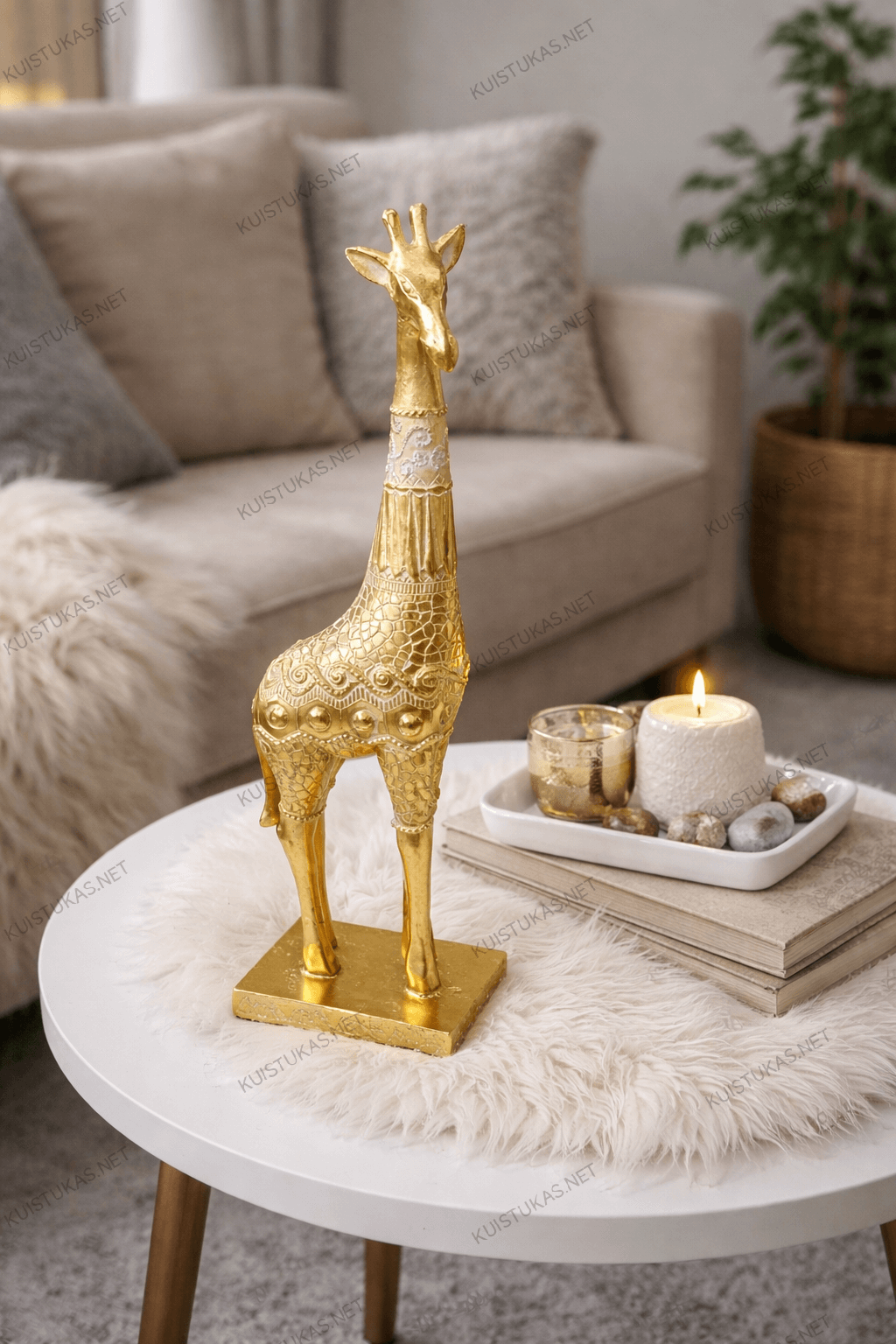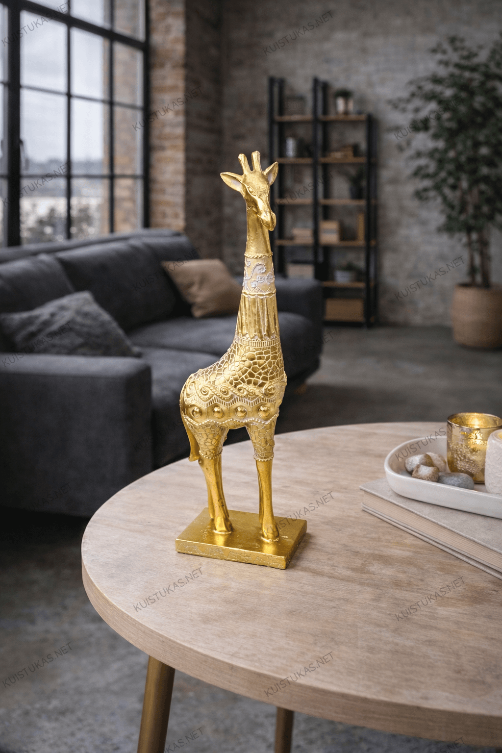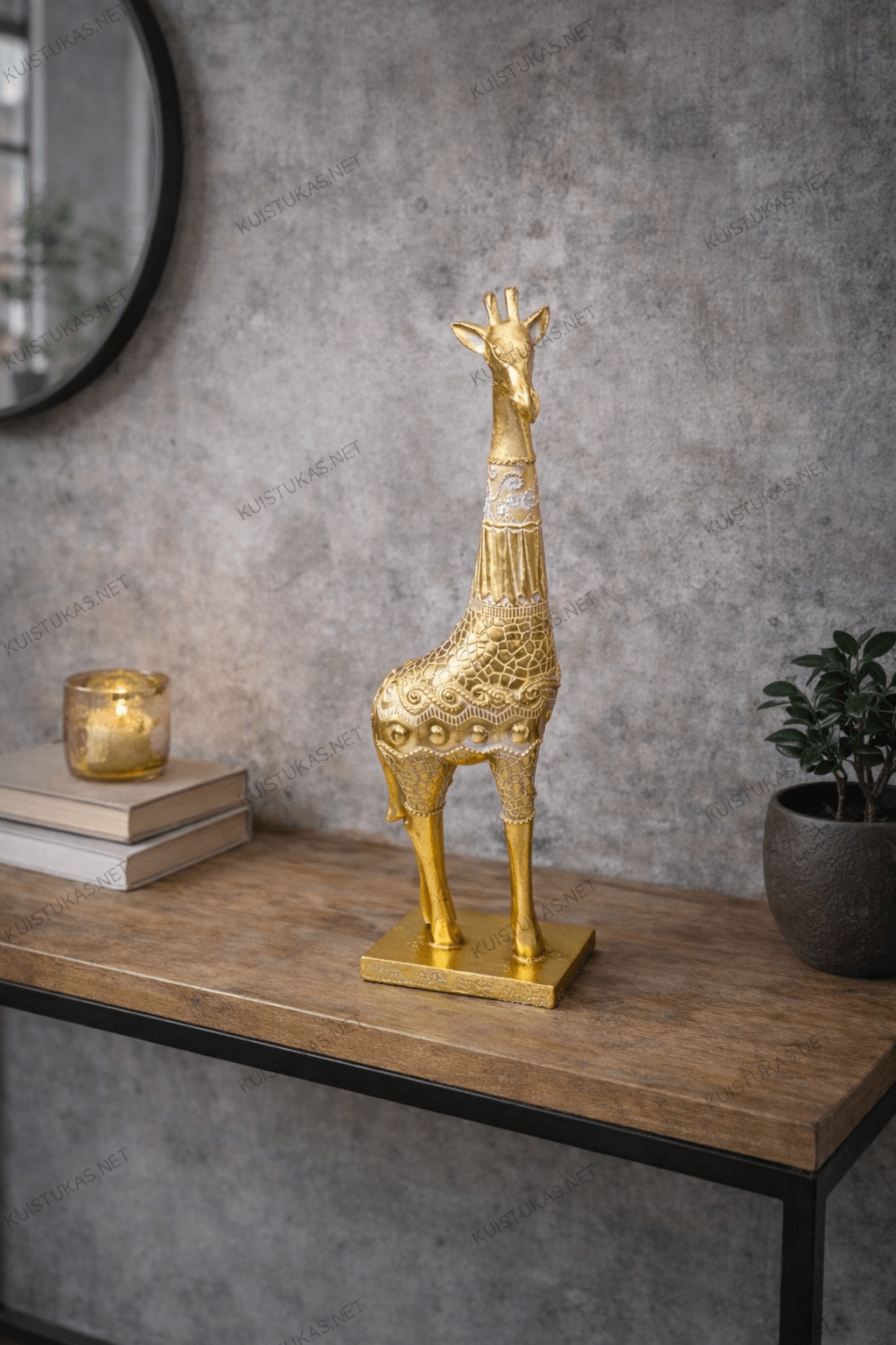 Dekoratyvinė skulptūra „Žirafa“ – tai stilingas pasirinkimas, kuris prikausto dėmesį savo elegantiška forma ir sodriu auksiniu atspalviu.