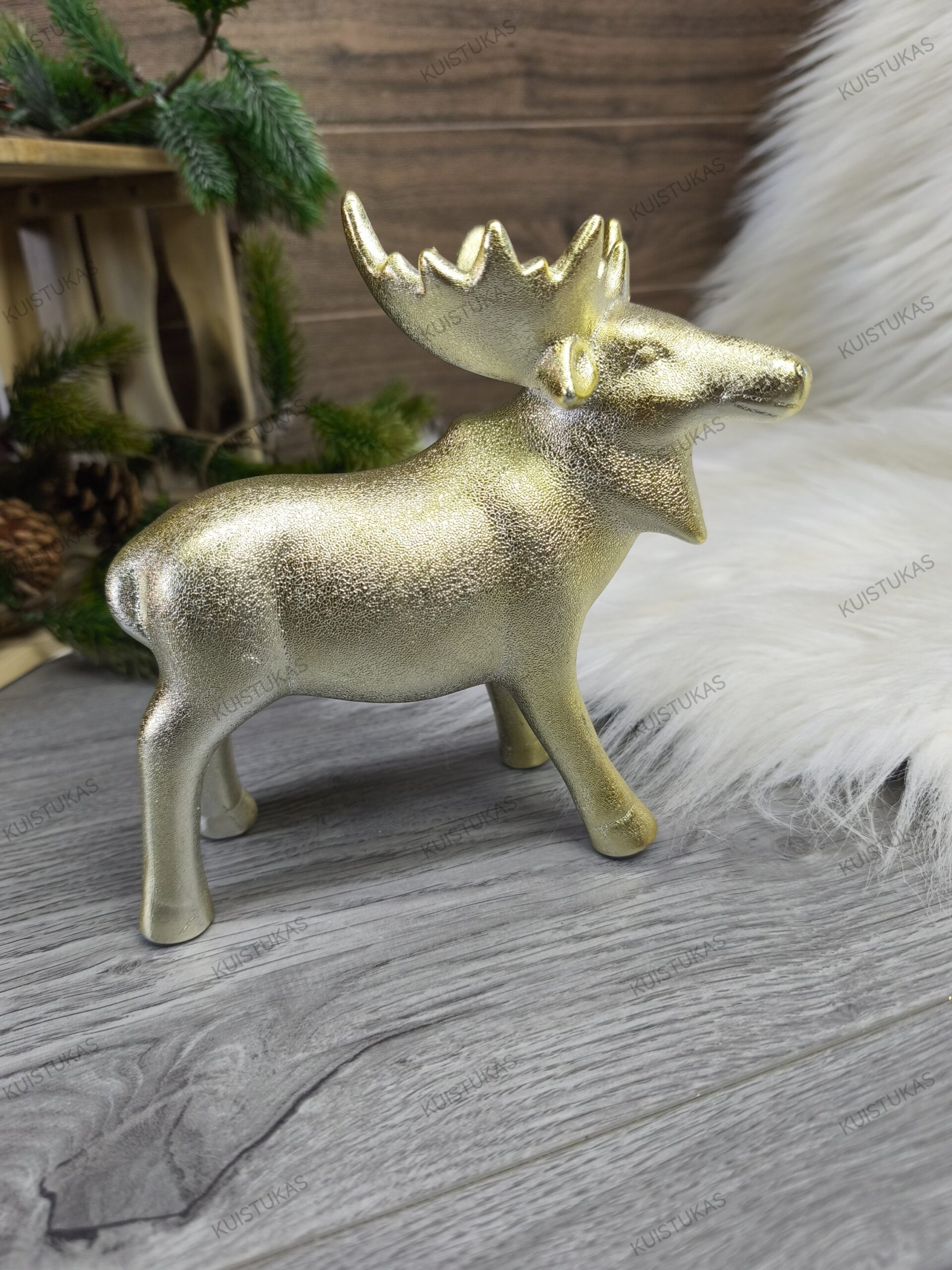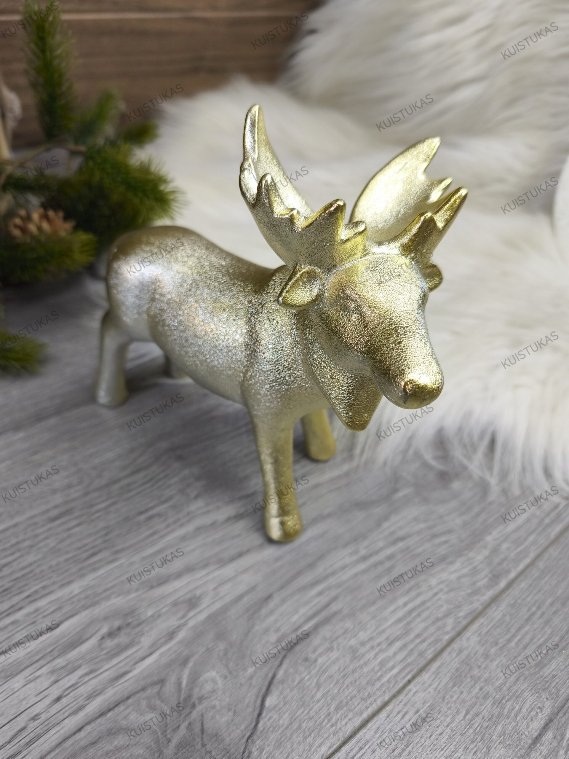 Dekoratyvinė statulėlė „Auksinis briedis“ – tai rafinuota ir stilinga detalė, kuri puikiai papuoš jūsų namus ne tik per šventes, bet ir visus metus.