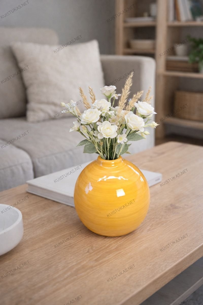 Dėl savo apvalios formos, glotnaus paviršiaus ir švelniai blizgančios glazūros ši keramikinė vaza atrodo moderniai, tačiau kartu išlieka universali ir lengvai pritaikoma įvairiems interjero stiliams – nuo skandinaviško iki modernaus ar bohemiško.
