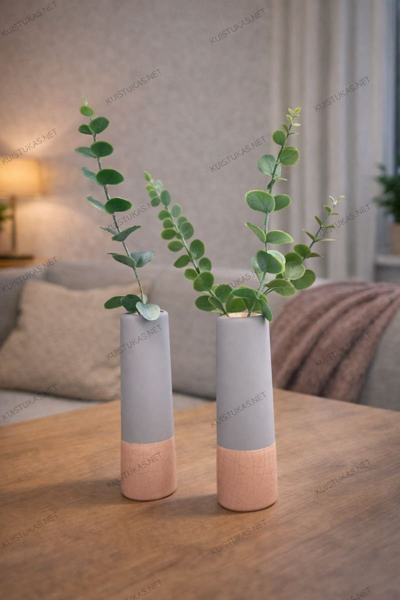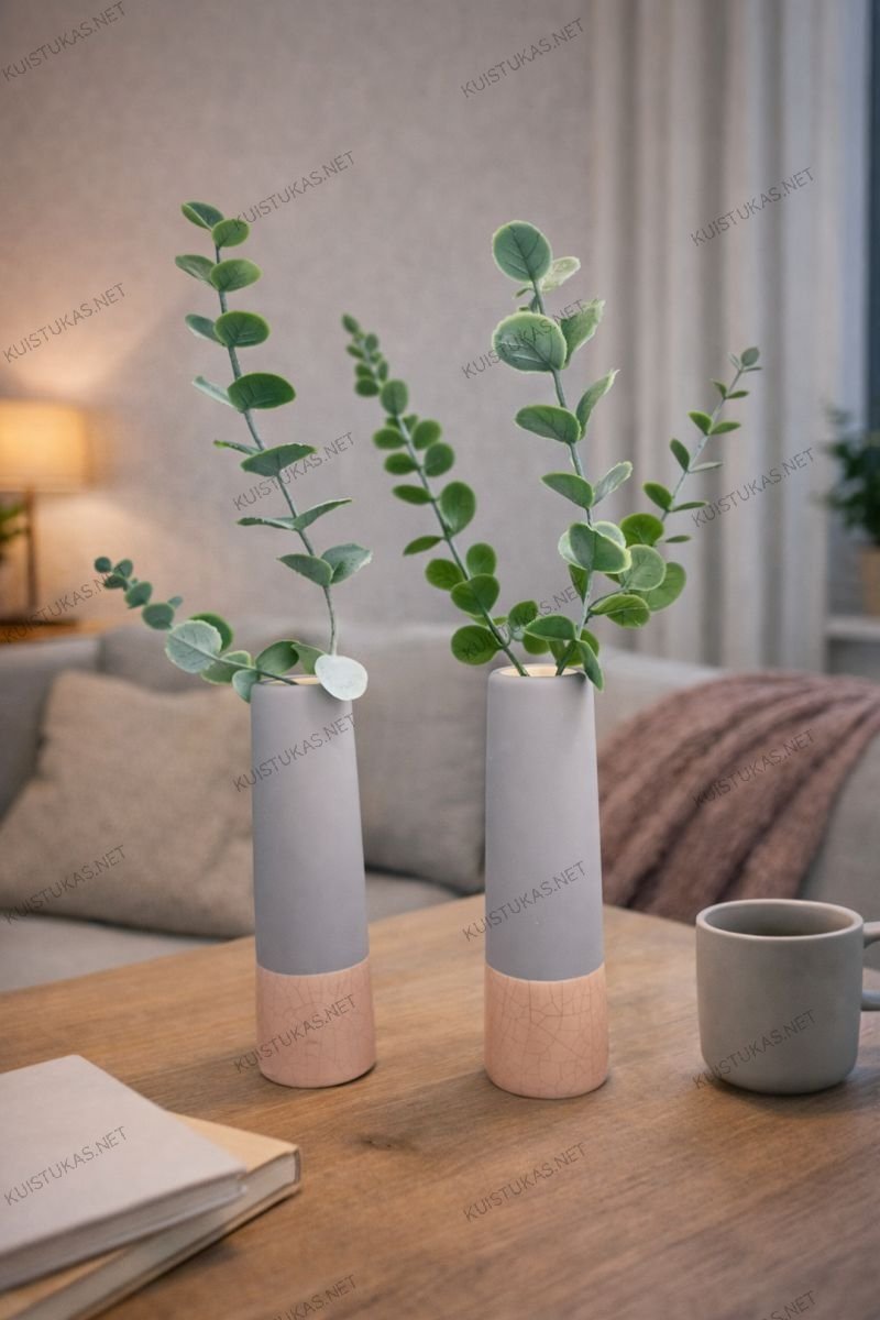 Šis dviejų vazelių rinkinys leidžia kurti harmoningas dekoratyvines kompozicijas ir suteikia erdvei vientisumo pojūtį.