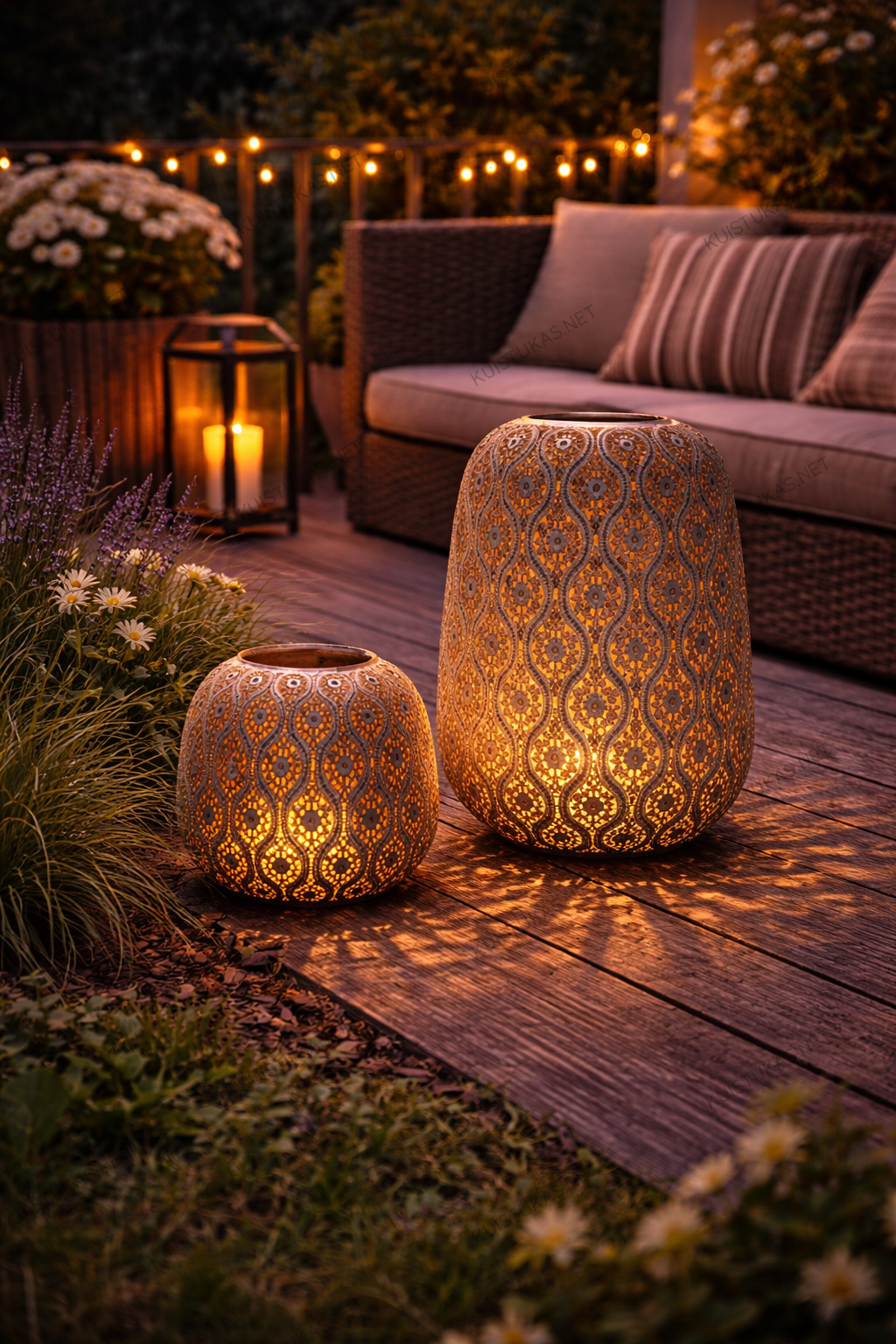 Suteikite savo namams ar lauko erdvei išskirtinumo ir jaukumo su šiuo dviejų dekoratyvinių žibintų komplektu.