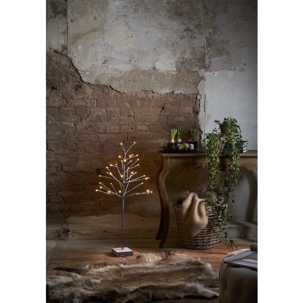 Dekoracijoje integruoti 36 šiltai baltos spalvos LED šviesos taškai, kurie tolygiai išdėstyti ant šakų, suteikdami medžiui gyvybės ir švytėjimo.