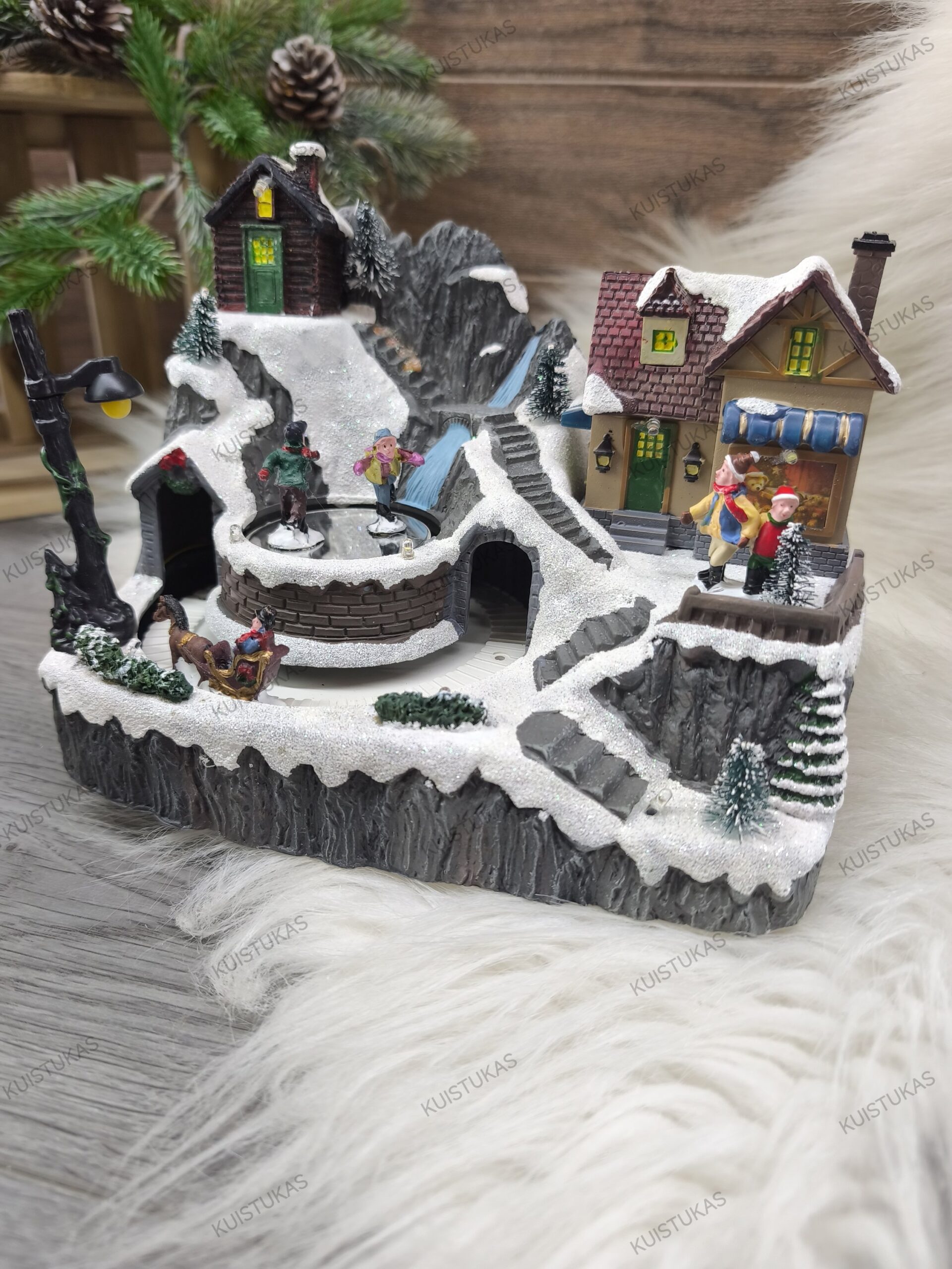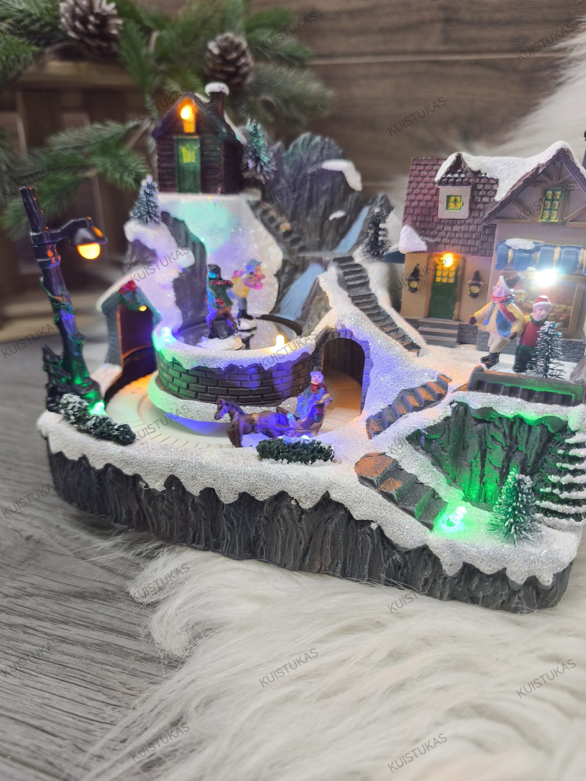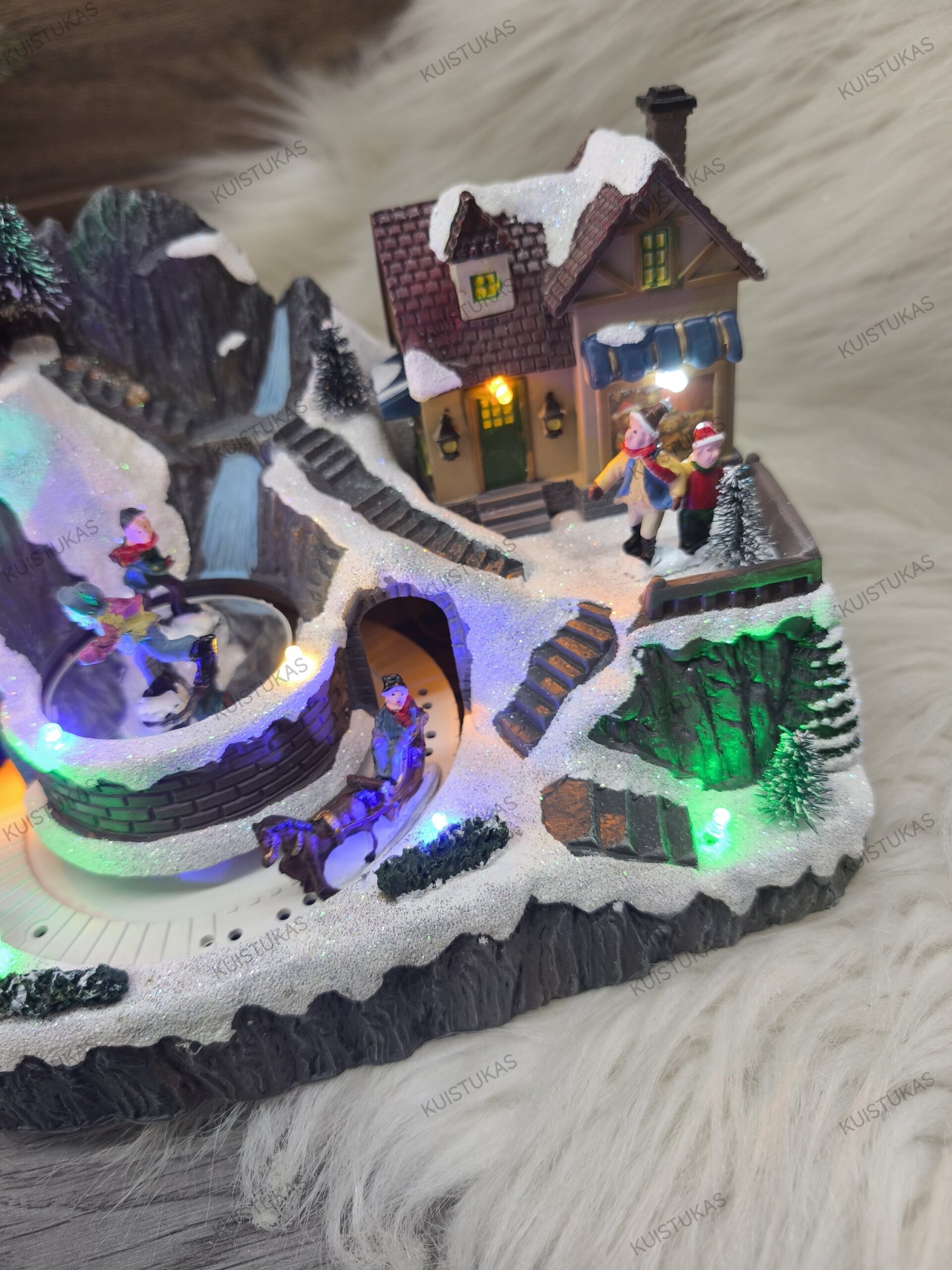 Šis miestelis su subtiliais RGB LED apšvietimais ir judančiais elementais, tokiais kaip besisukantys vaikai bei arklys su rogutėmis, atrodo itin gyvai ir realistiškai.
