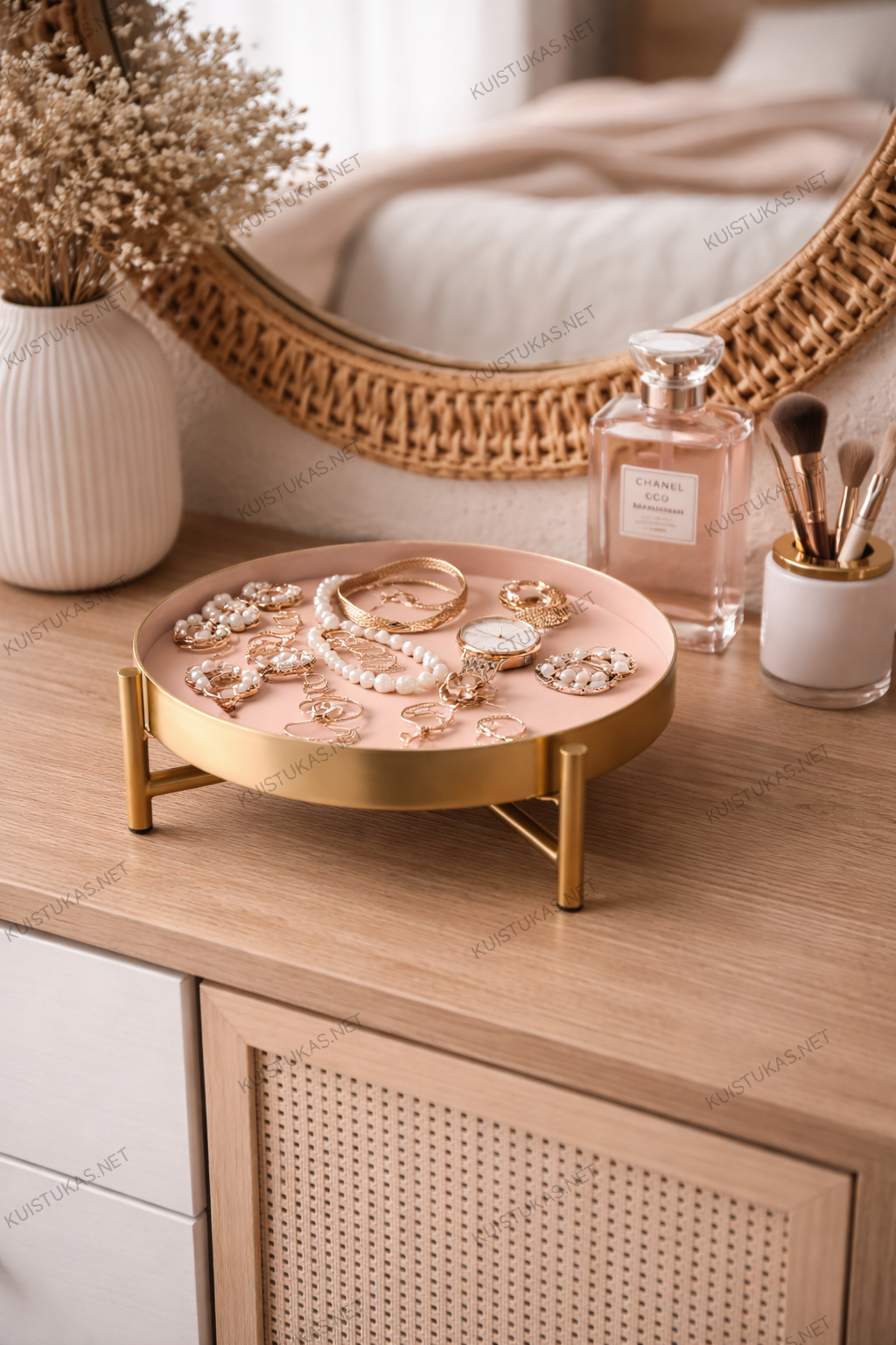 Ant jo galite laikyti žvakes, papuošalus, kvepalus, kosmetiką ar kitus dekoratyvinius elementus.