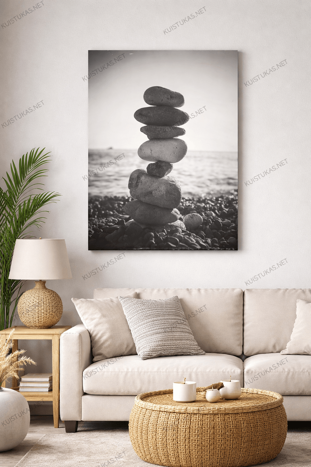 Dekoratyvinis paveikslas „Balanso akimirka“ – subtilus ir harmoningas interjero akcentas, kuris jūsų erdvei suteiks ramybės, pusiausvyros ir natūralios estetikos pojūtį.