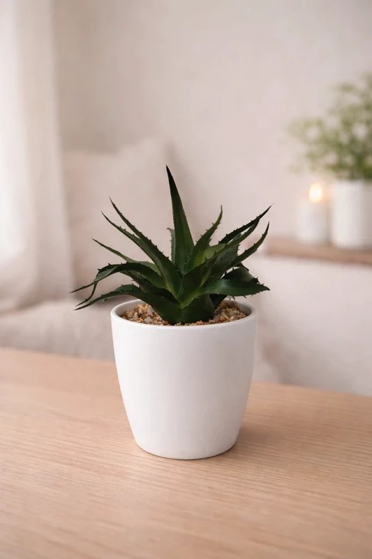 Dekoratyvinis sukulentas „Mini Aloe“ – tai subtilus, modernus ir itin universalus interjero akcentas, suteikiantis erdvei gyvybės, jaukumo ir natūralumo pojūtį.