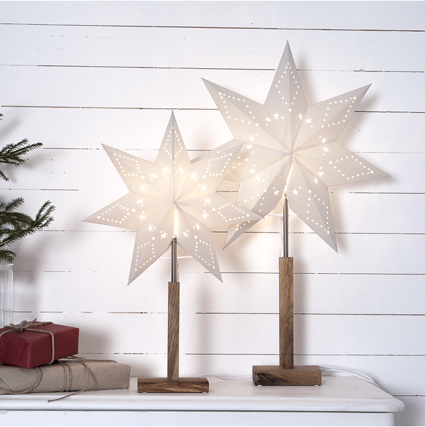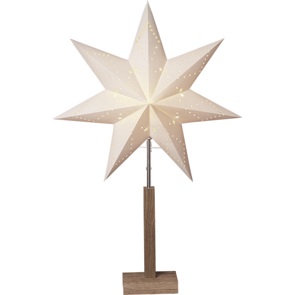 Jo pagrindas iš medžio imitacijos, o žvaigždė – iš kokybiškos medžiagos, praleidžiančios švelnią, malonią šviesą.