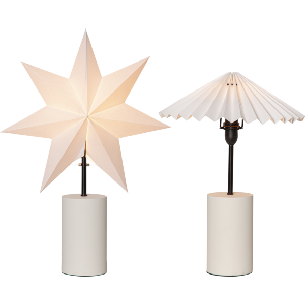 Jis išsiskiria dviejų variantų dizainu: balta popierinė žvaigždė ant kojelės bei subtilus klostuotas gaubtas.