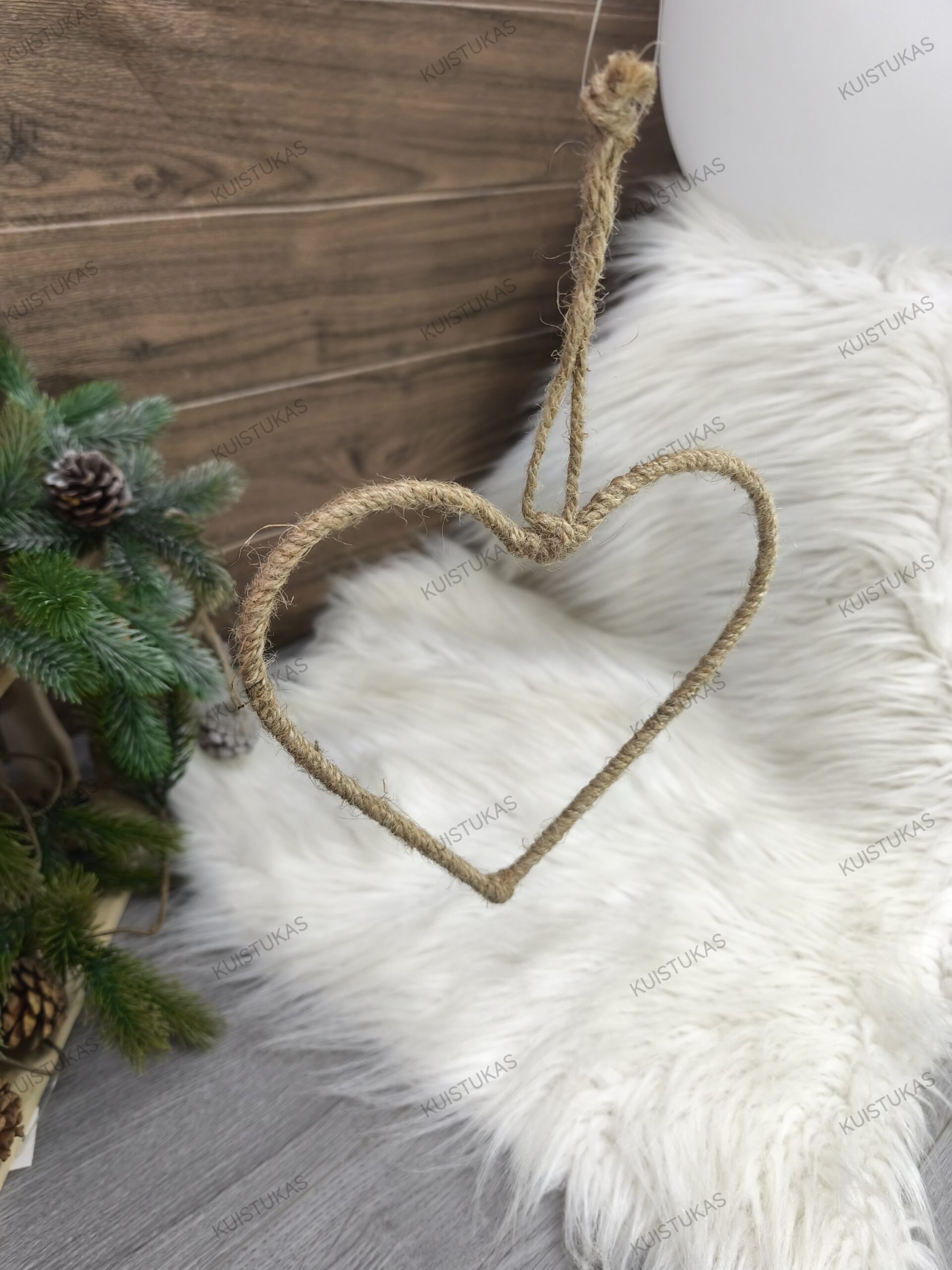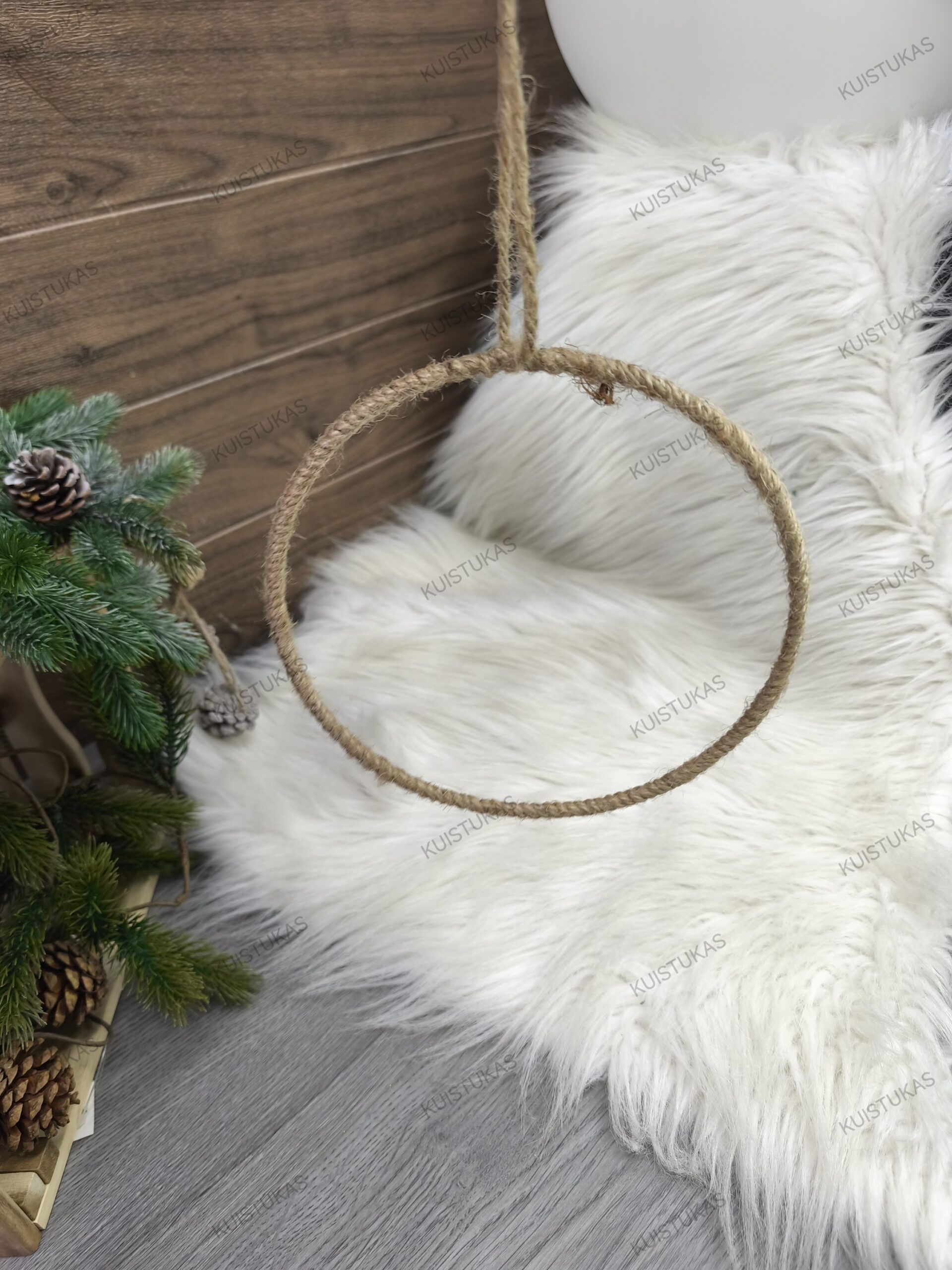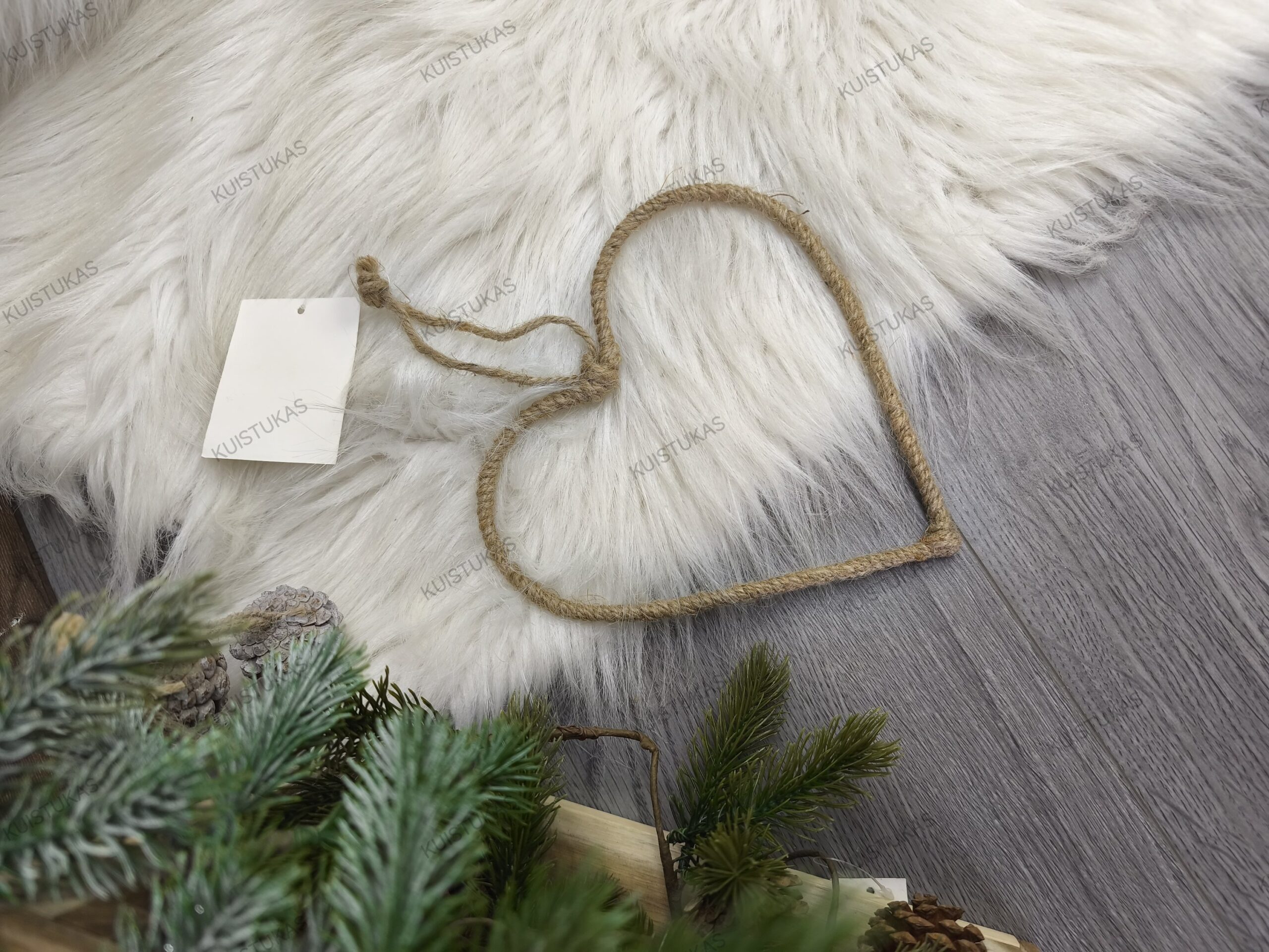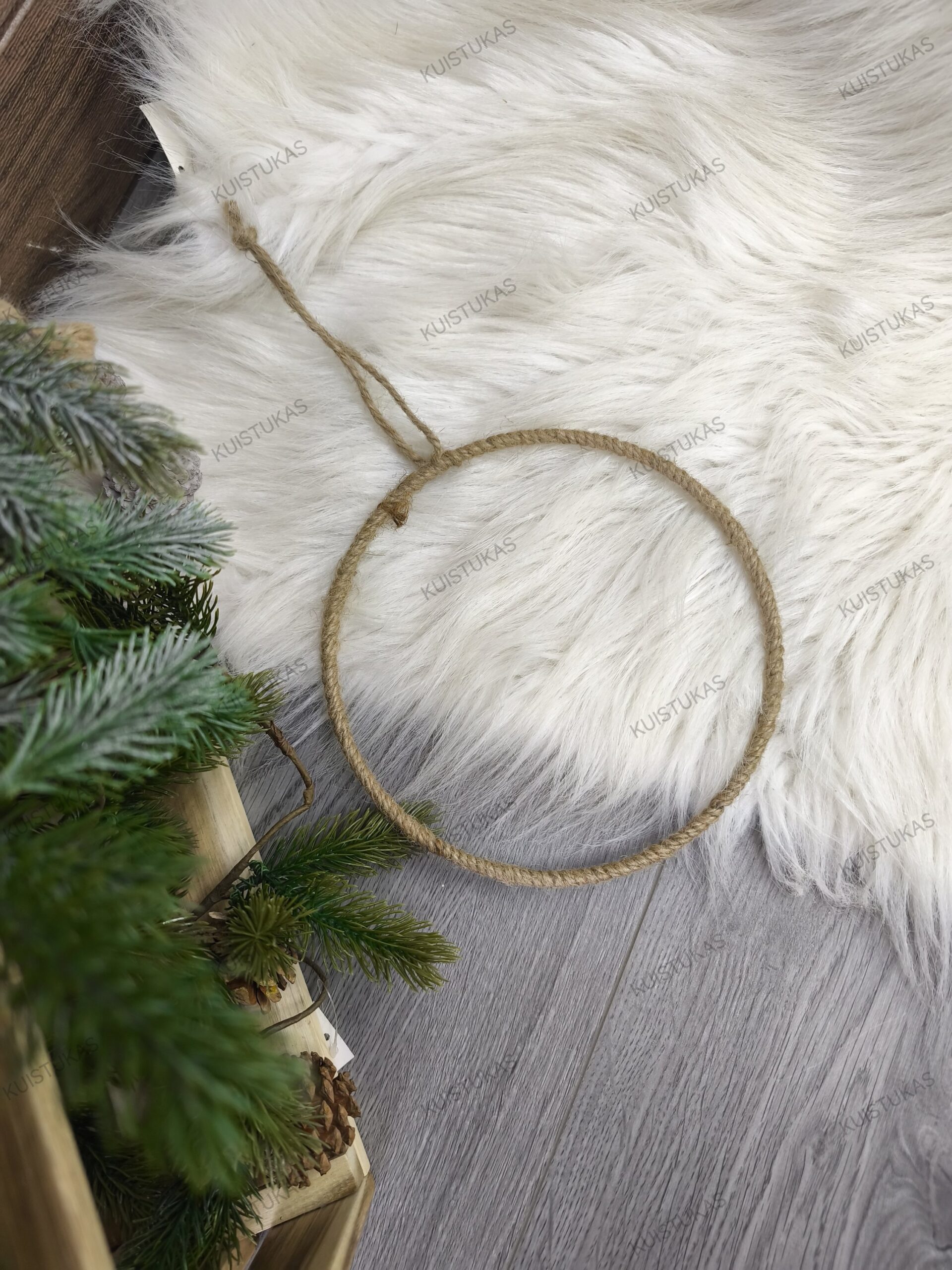 Vainikas iš tvirto karkaso , apipinto natūralia džiuto juostele , suteikia jam išskirtinį, rankų darbo įspūdį.