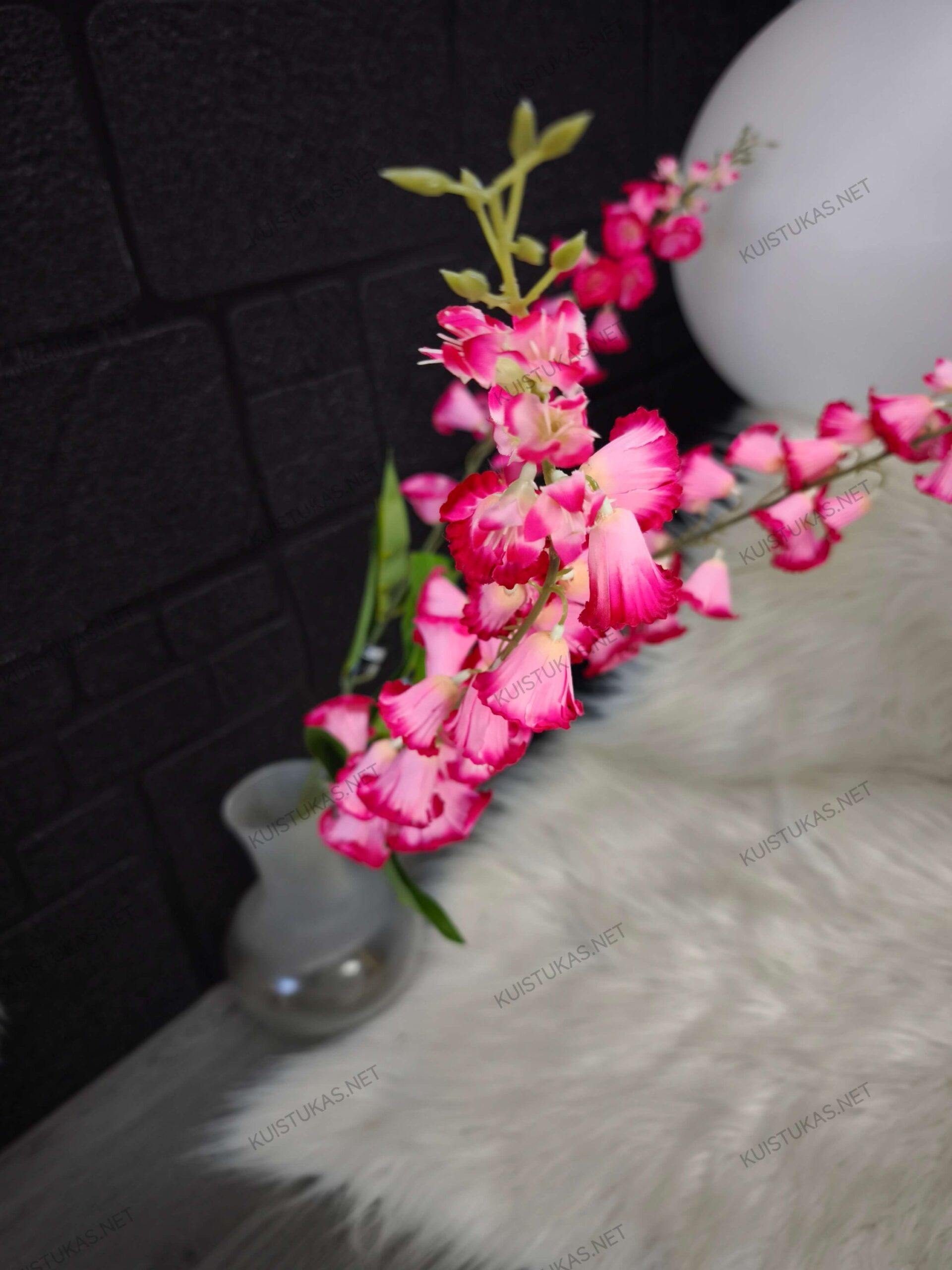 Ši dekoratyvinė šakelė su ryškiais rožiniais žiedais puikiai papildo ir sukuria subtilų pavasarišką akcentą bet kurioje erdvėje.