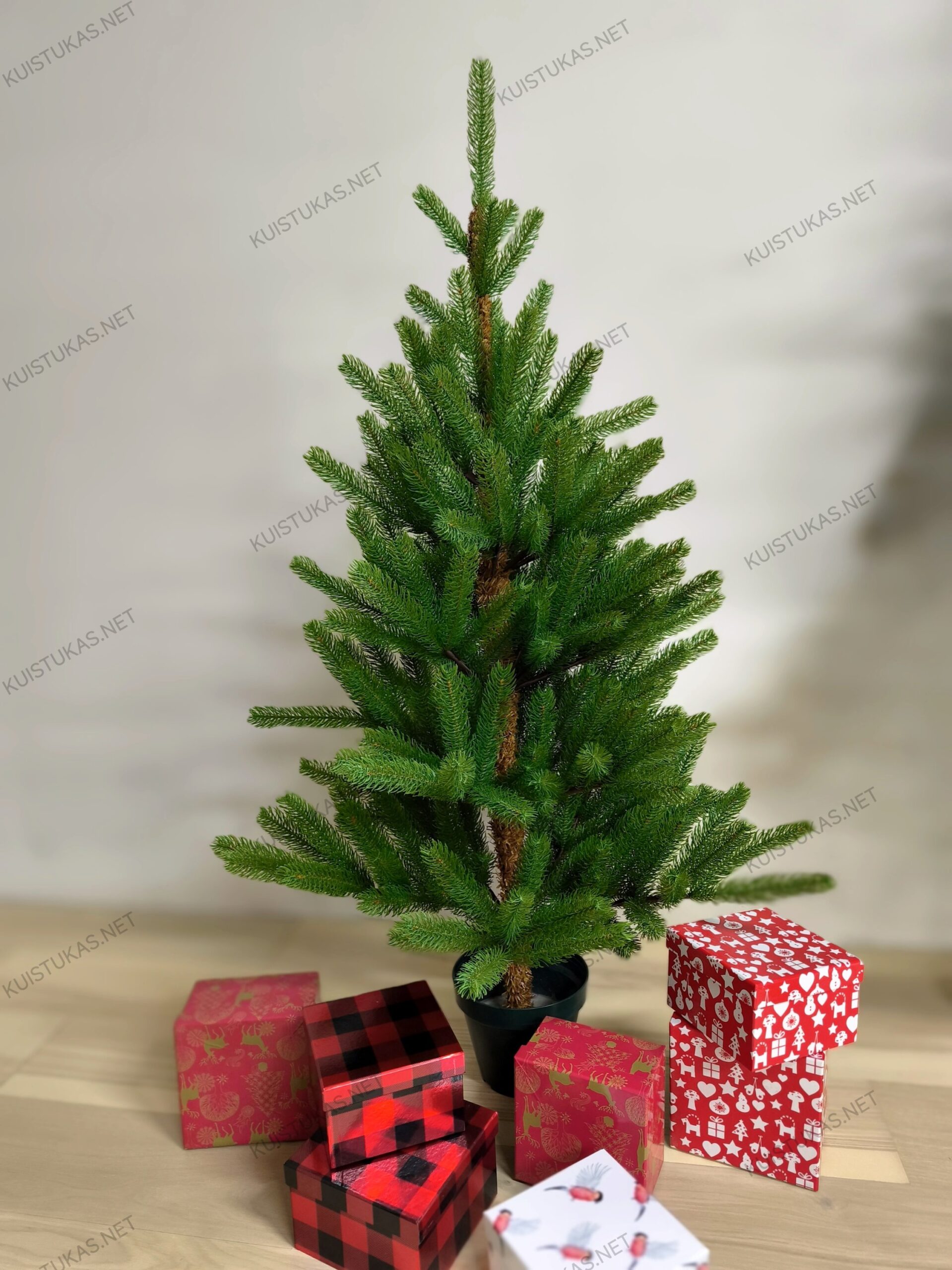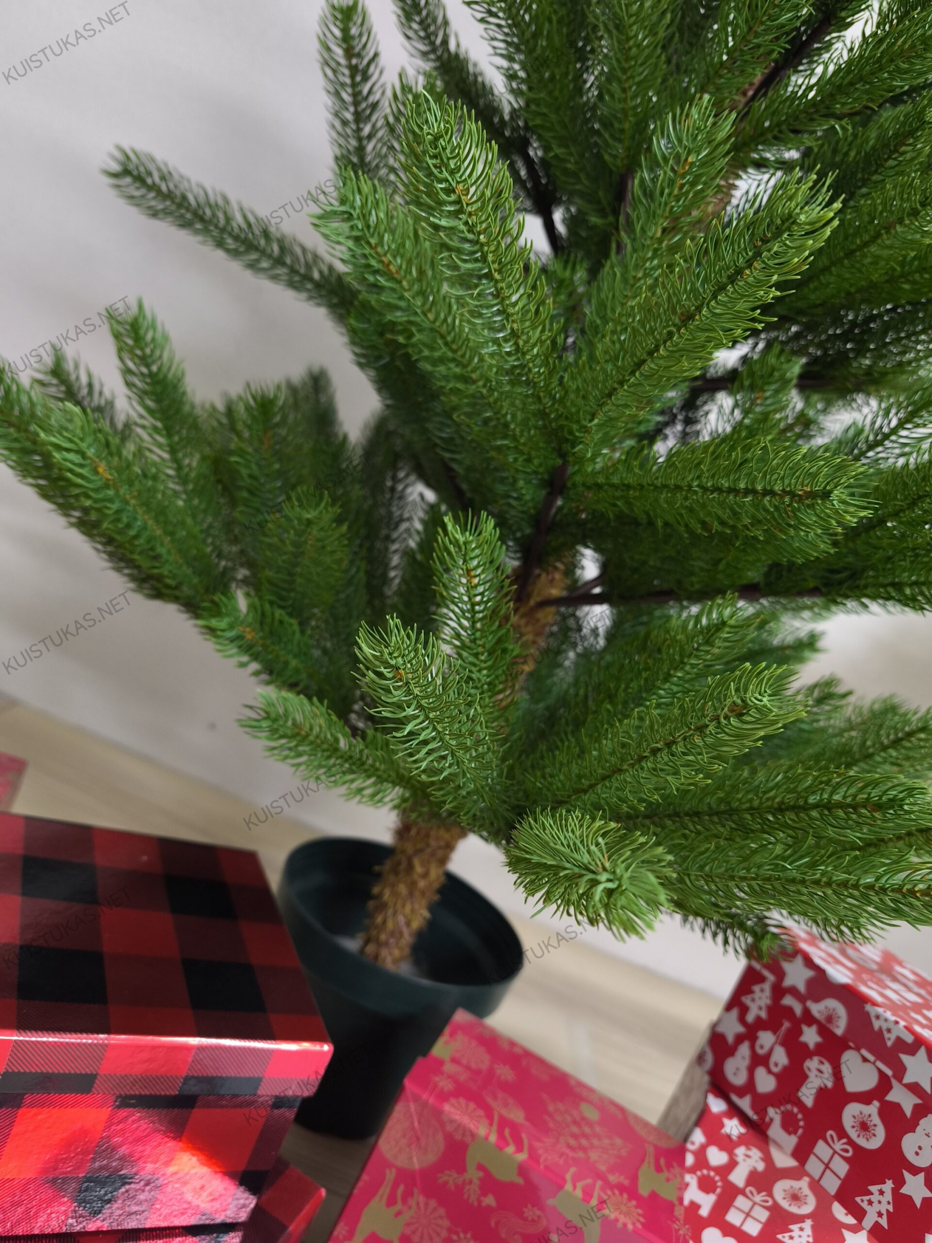 Dirbtinė eglutė jau su vazonu, tad nereiks rūpintis papildoma vieta, kur pastatyti eglę, kad stovėtų tvirtai.