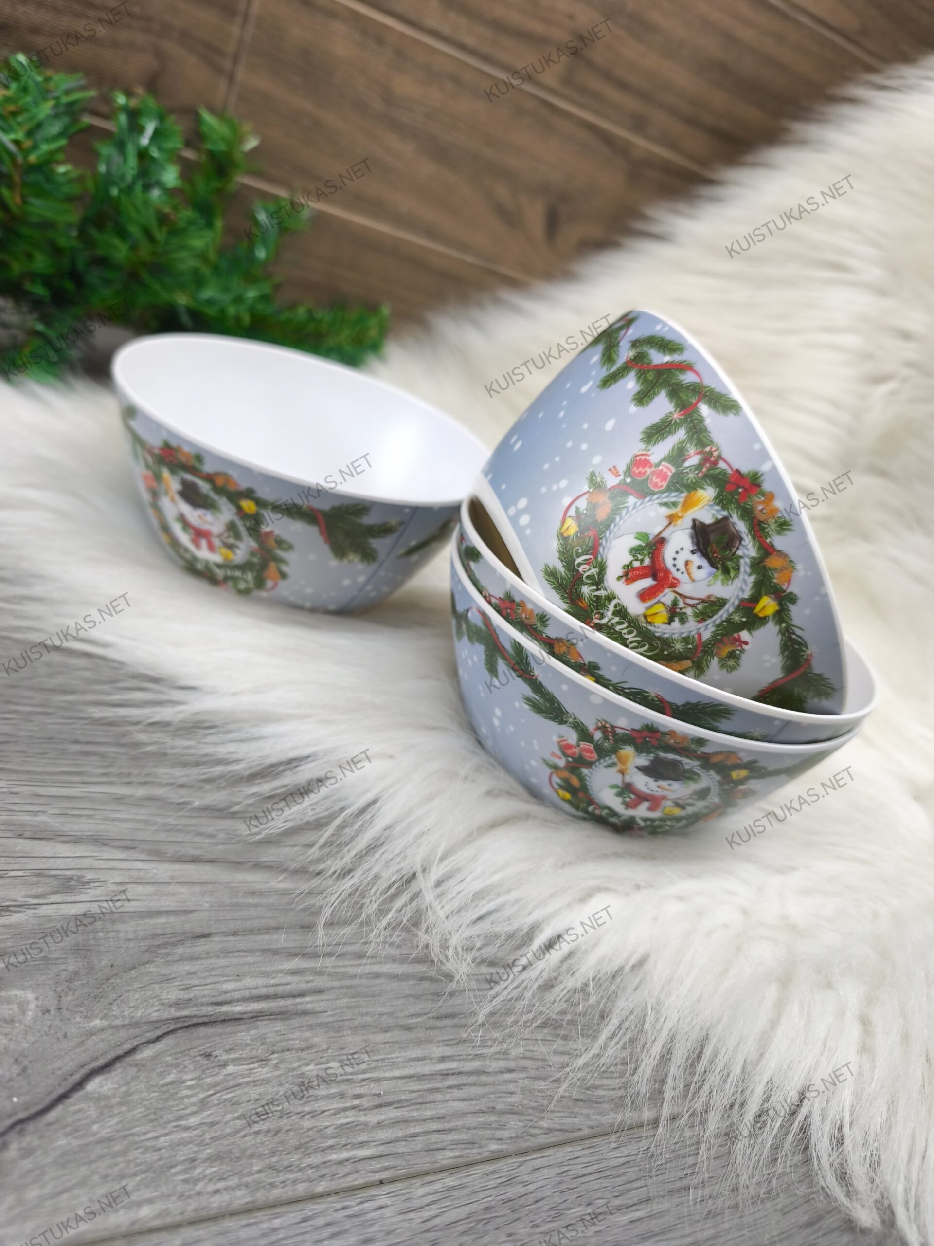 Papildykite savo šventinį indų rinkinį kalėdiniais dubenėliais „Snowman“.