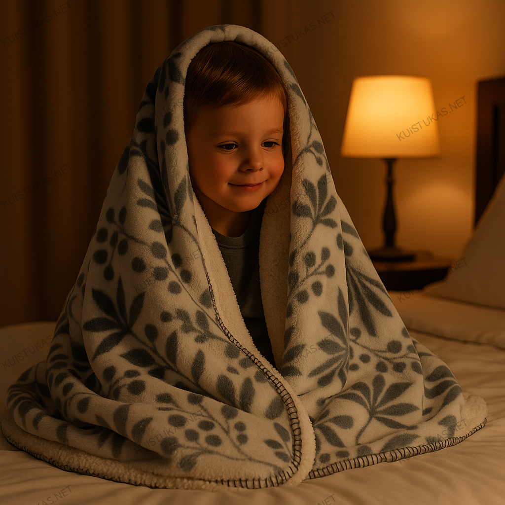 Viena pusė padengta švelniu, pliušiniu audiniu, o kita – puriu „Teddy“ tipo kailiuku, suteikiančiu papildomos šilumos.