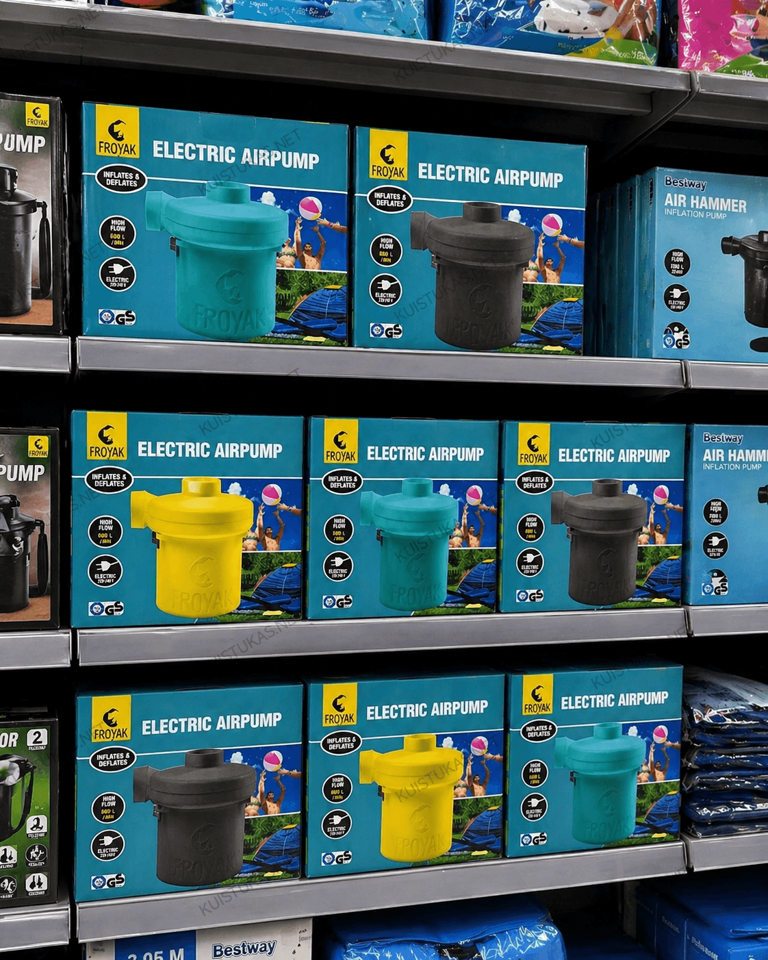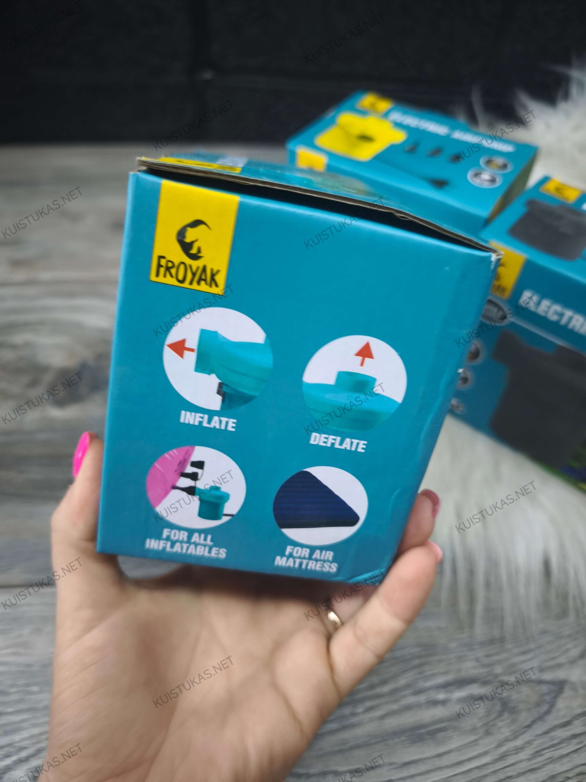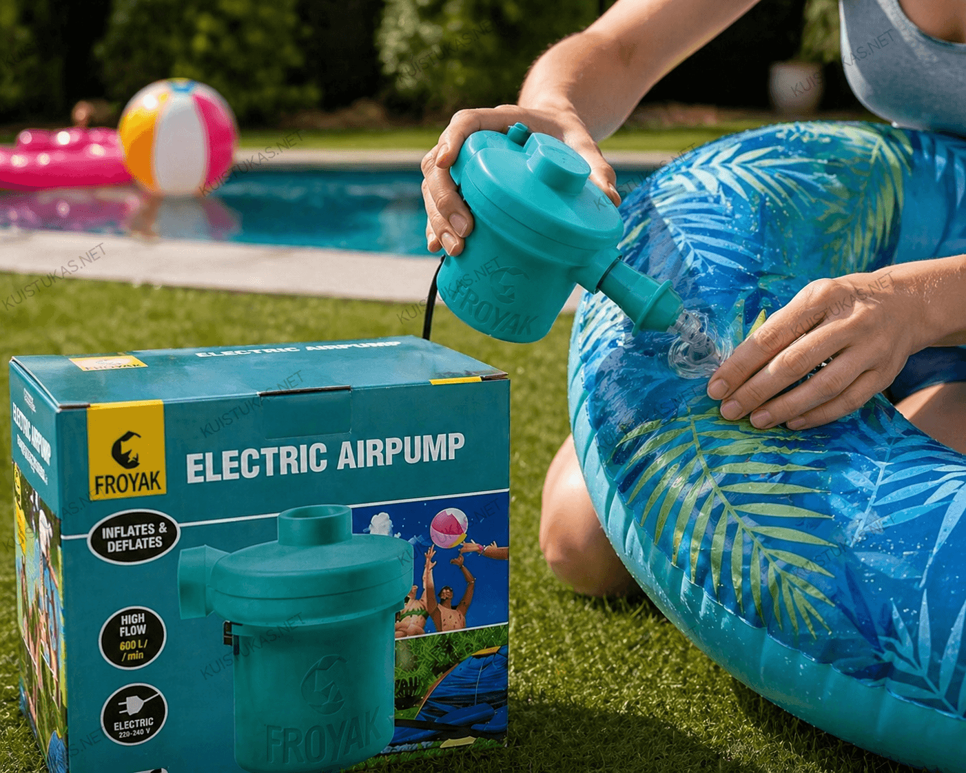 Elektrinė oro pompa „Froyak PowerPump“ – tai patikimas ir galingas sprendimas greitai įvairių pripučiamų daiktų pripūtimui bei oro ištraukimui.