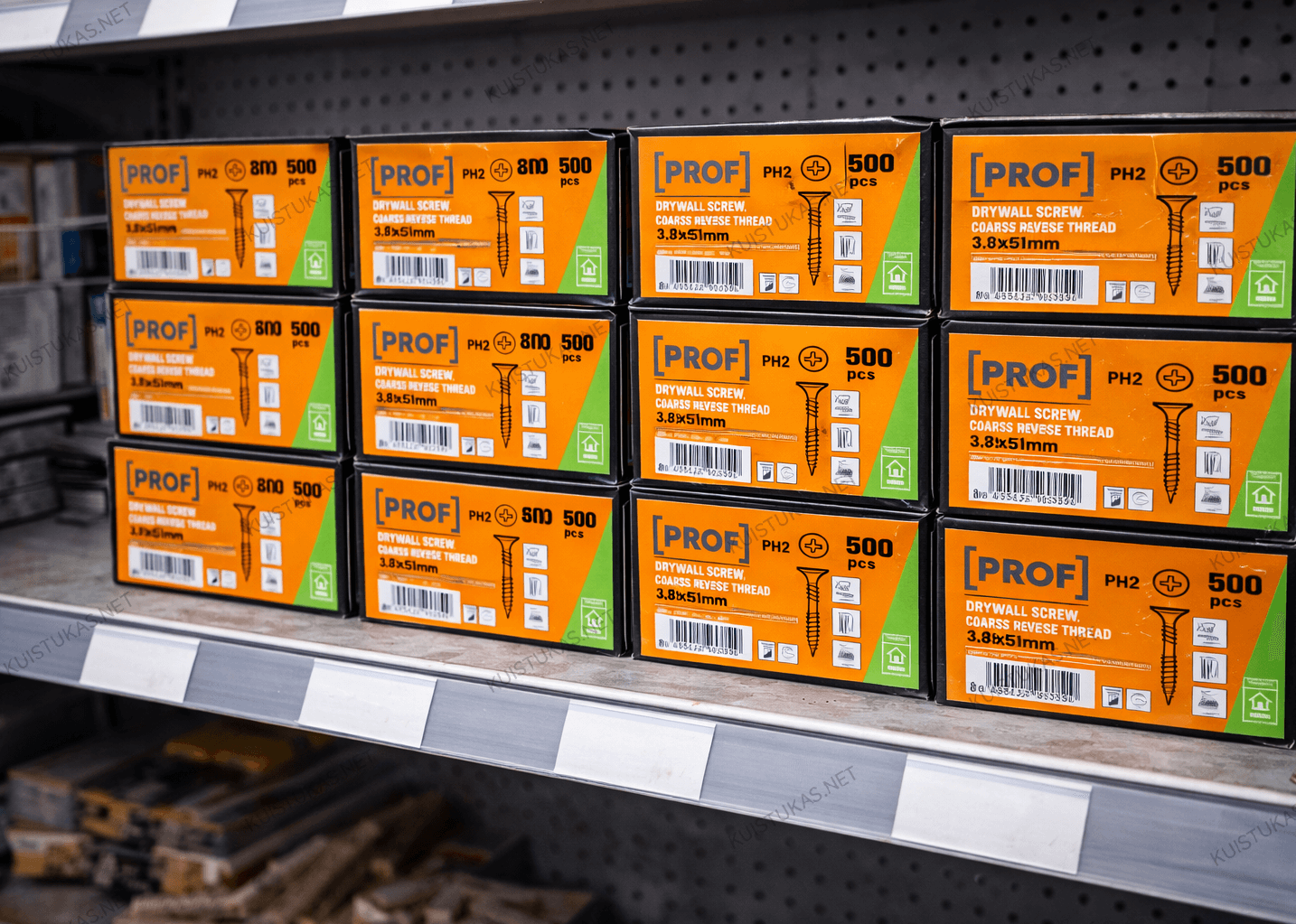 Gipso kartono sraigtai „Prof“ 3,8×51 mm – patikimas sprendimas profesionaliems ir namų apdailos darbams.