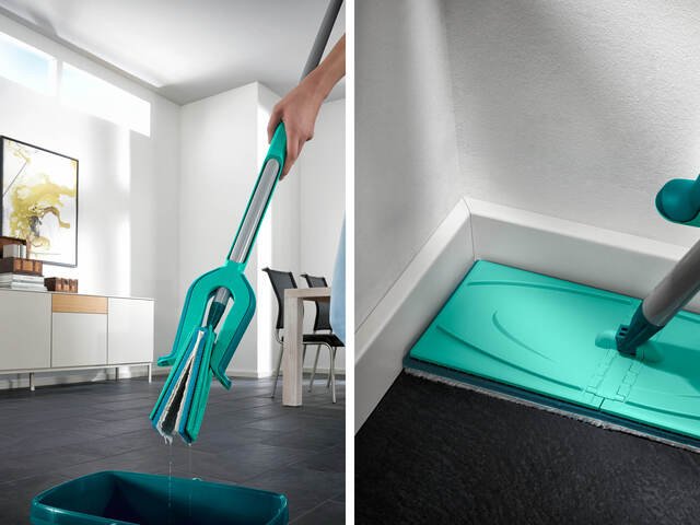 „Leifheit Piccolo M Micro Duo“ grindų šluota tinka įvairiems paviršiams – plytelėms, laminatui, parketui, vinilinei ar akmens masės dangai.