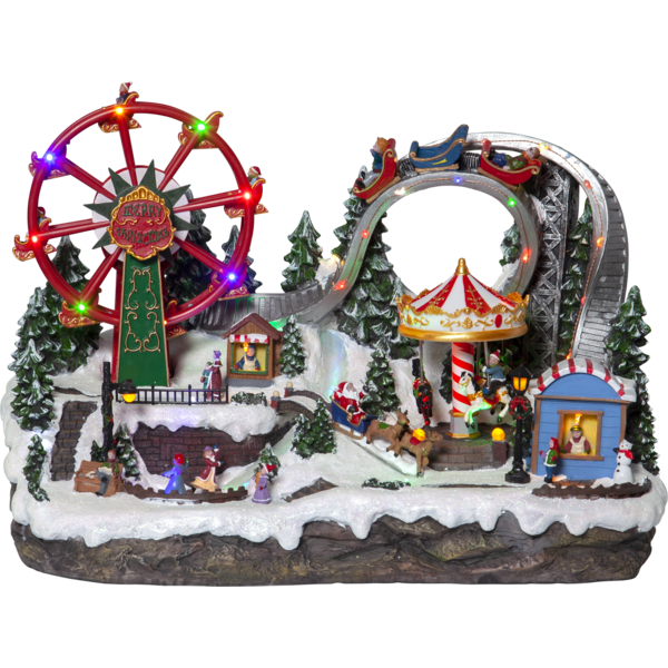 Šis detalus šventinis peizažas sukurtas tiems, kurie nori daugiau nei paprastos dekoracijos – tai visa mini Kalėdų mugė , atgyjanti šviesų ir judesio šokyje.