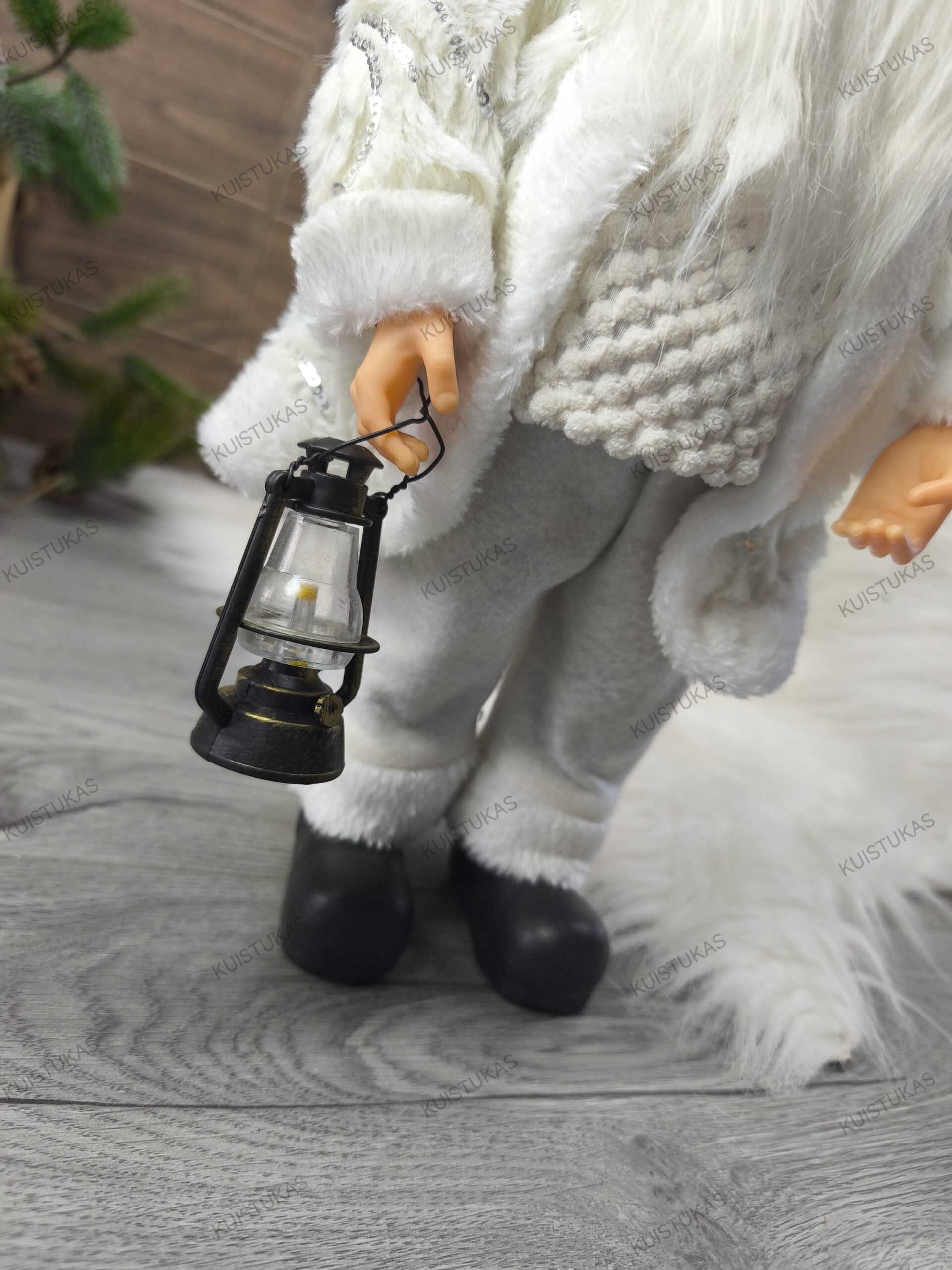 Dekoracijos aukštis yra 60 cm (su kepure), todėl ji puikiai tiks kaip centrinis akcentas ant komodos, prie eglutės ar po ja.