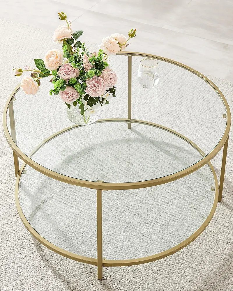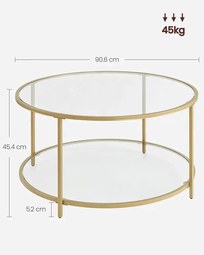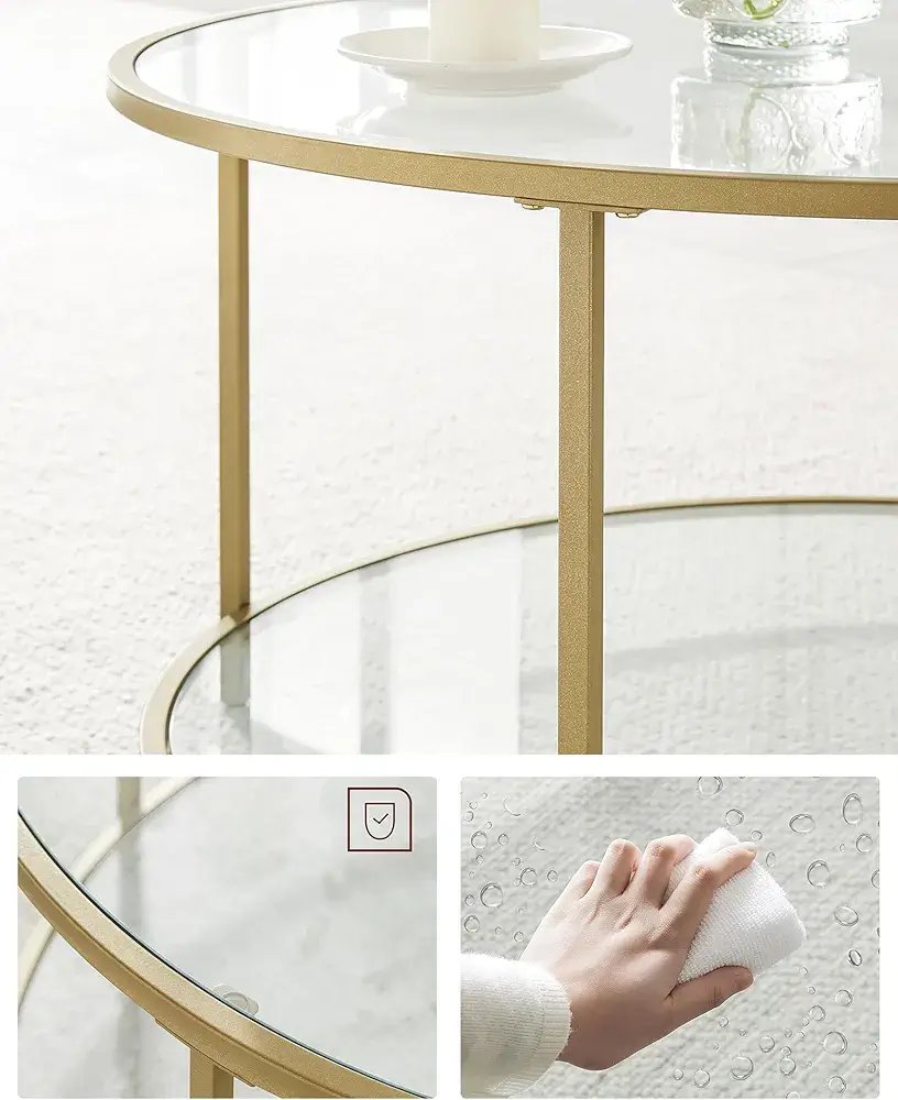 Subtilus dizainas su stikliniais paviršiais ir auksinės spalvos rėmu puikiai dera tiek moderniuose, tiek klasikiniuose interjeruose.