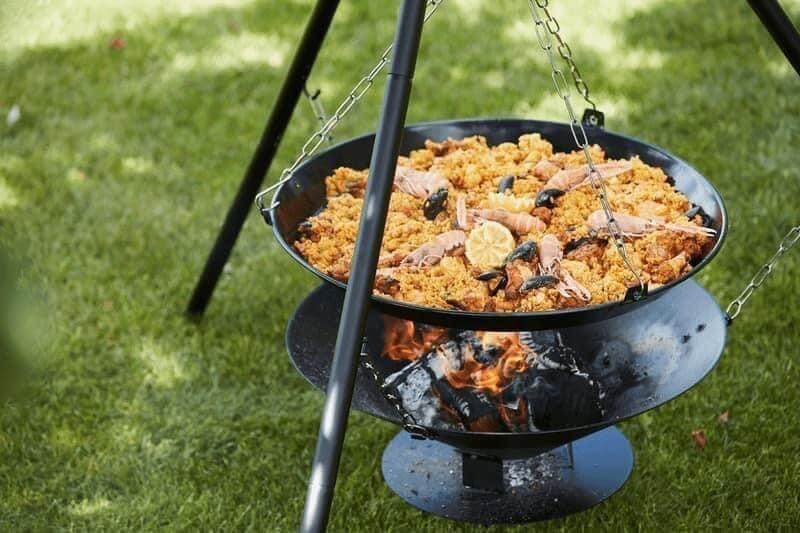 Tvirtas, metalinis trikojis rėmas, bei nerūdijančio plieno grotelės su grandinių sistema – tobulas derinys Jūsų maisto ruošimui.