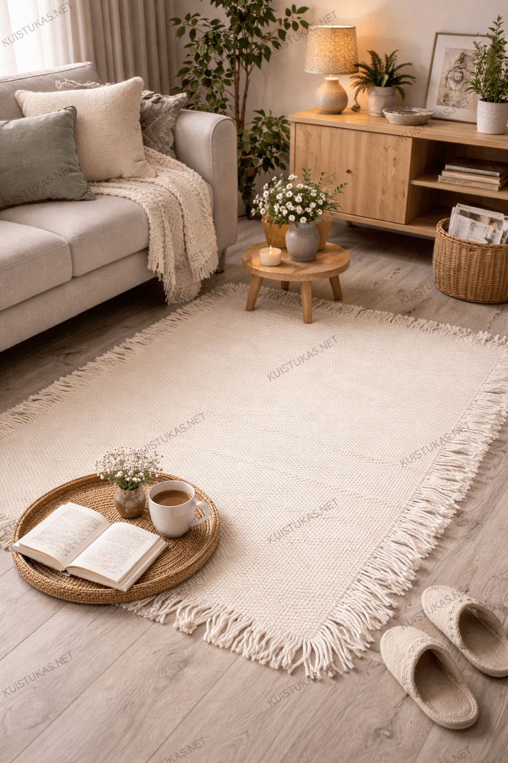 Jaukus, šviesus ir stilingas kilimas su kutais, kuris akimirksniu suteiks namams šilumos ir komforto.