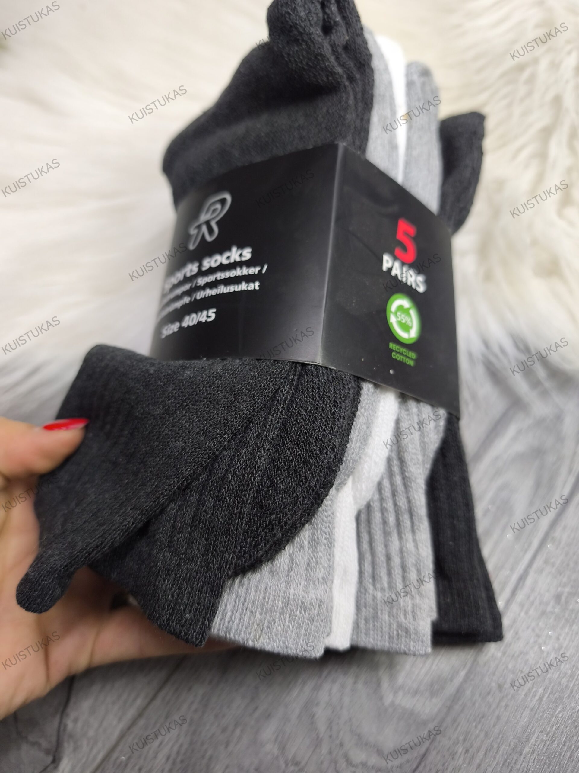 Pakuotėje 5 poros kojinių.