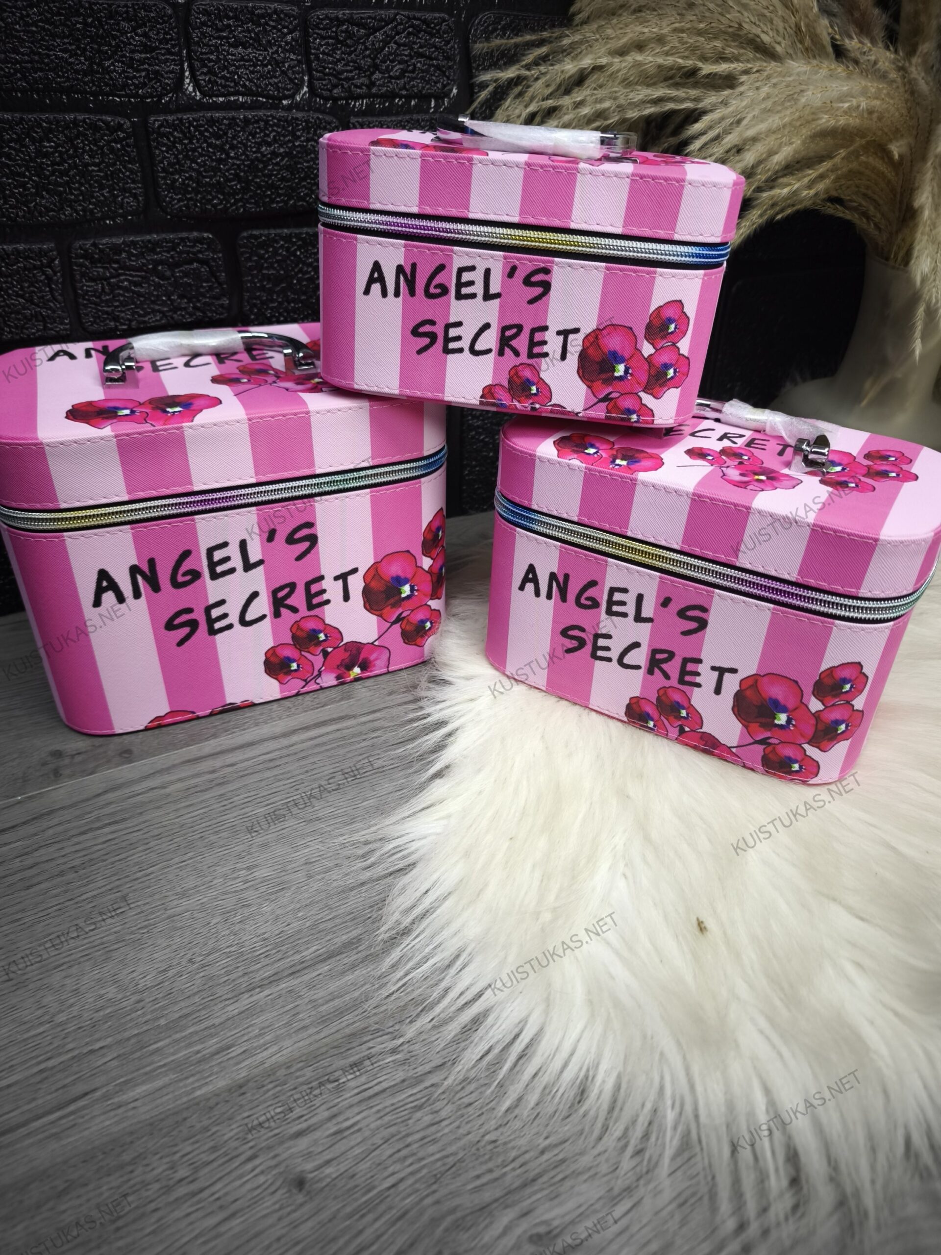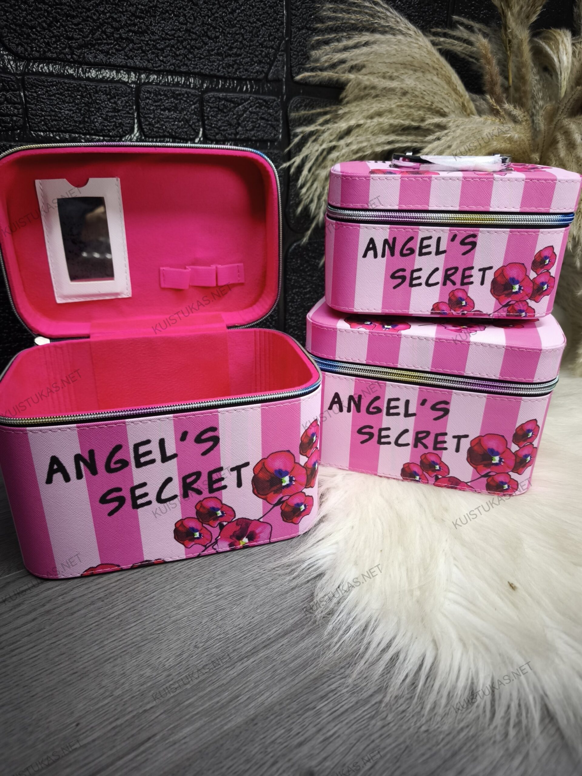Rinkinį sudaro trys skirtingų dydžių kosmetinės, kurios susideda viena į kitą.