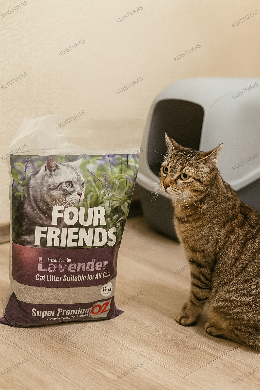Pasirinkę „Four Friends“ levandų kvapo kraiką, pasirenkate švarą, gaivą ir patikimumą – visa tai, ko reikia jūsų katės komfortui ir jūsų namų tvarkai.