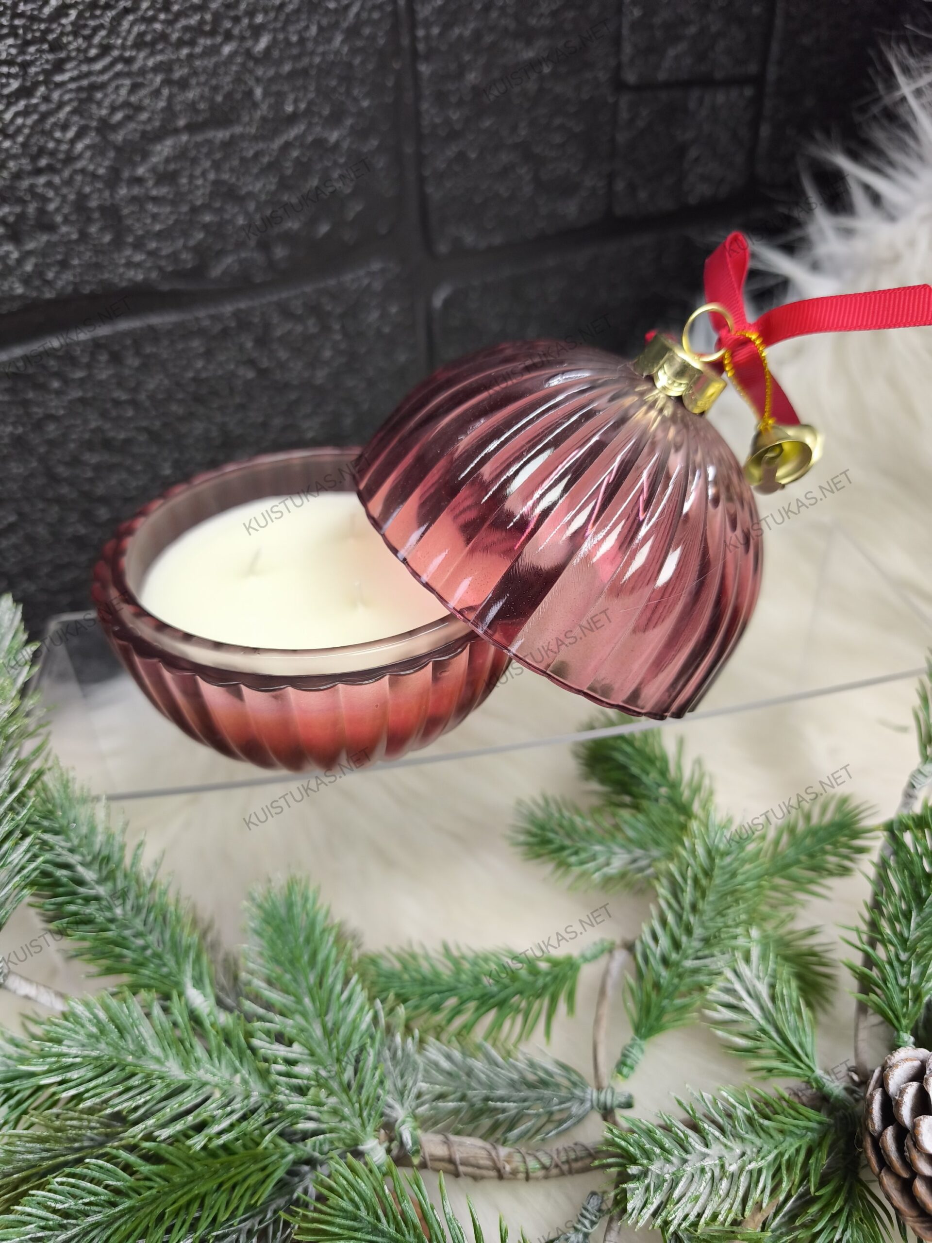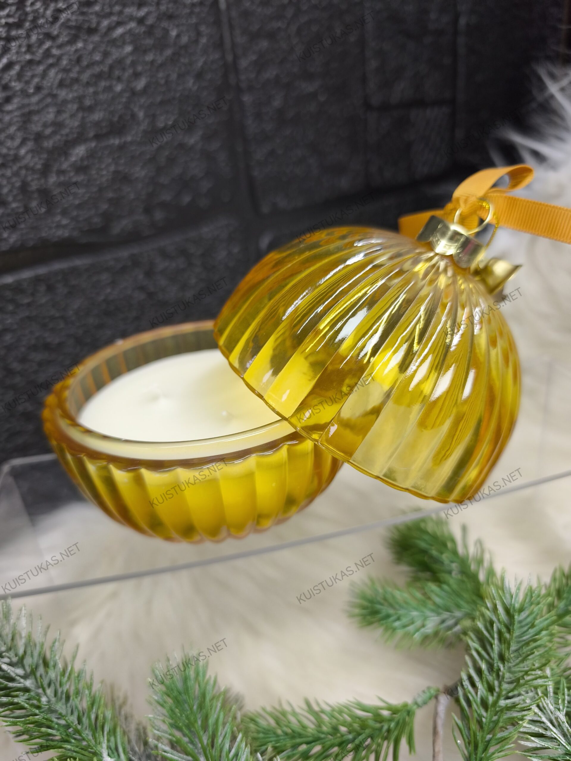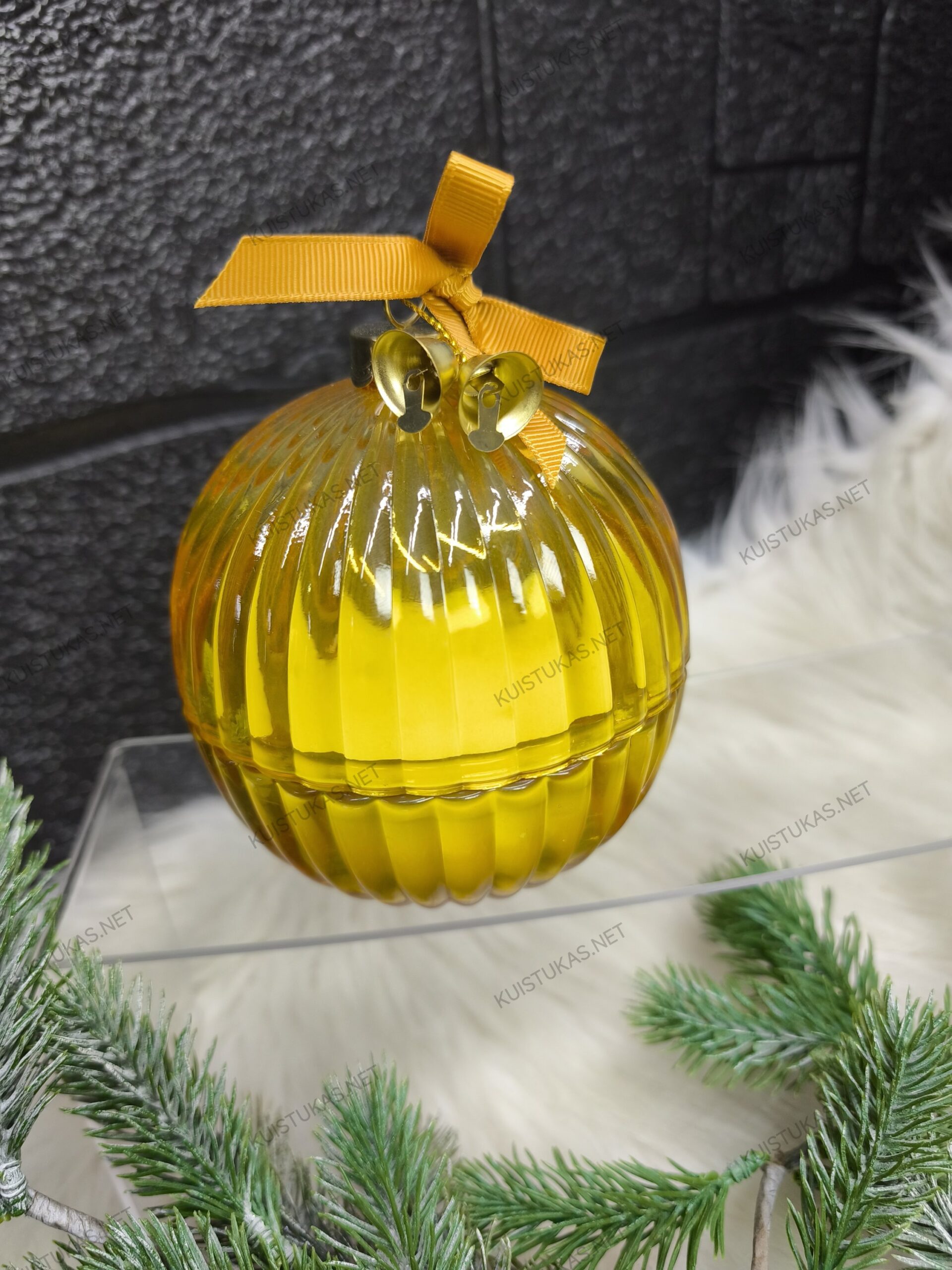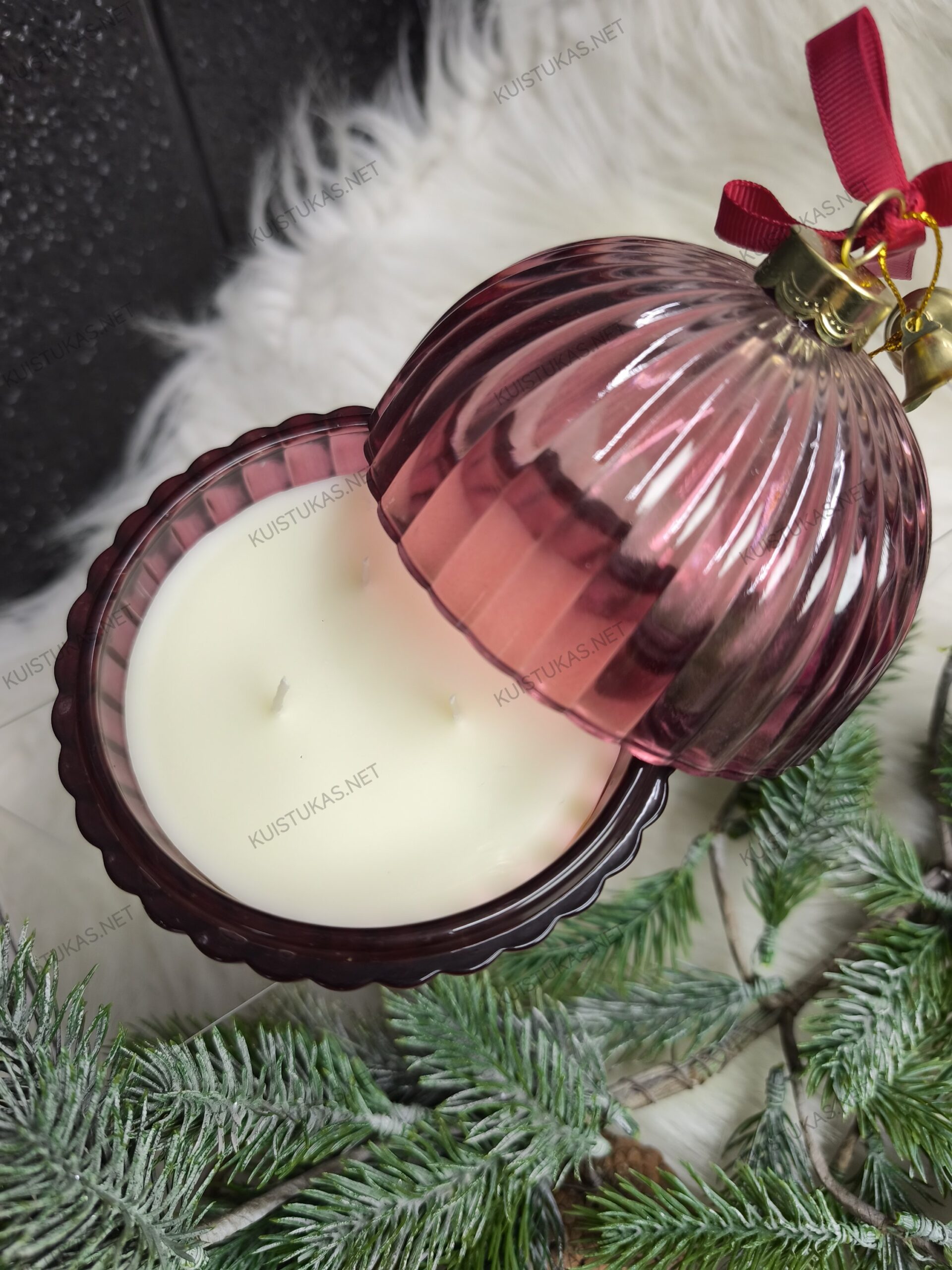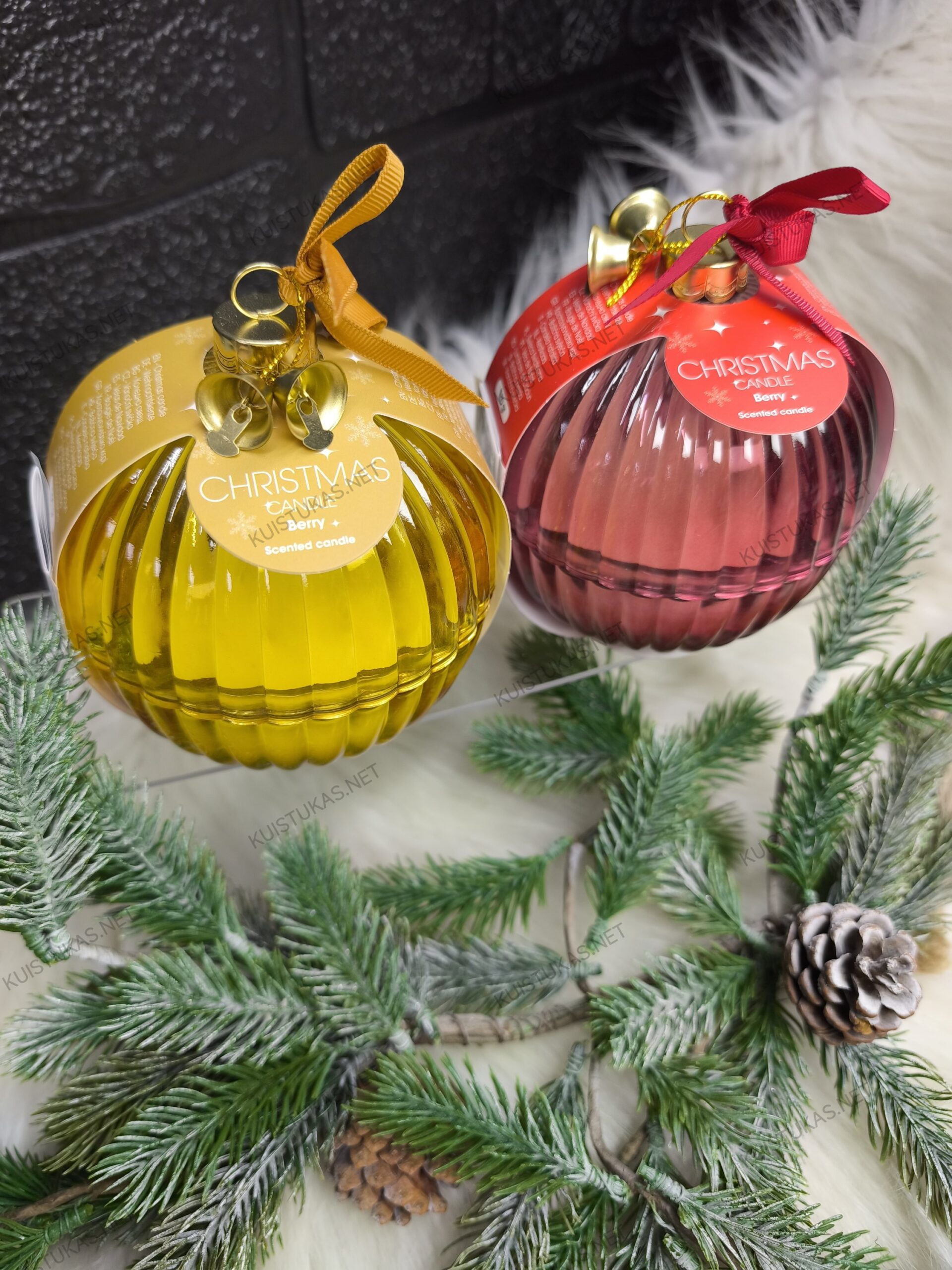 Galite rinktis geltonos arba raudonos spalvos indą – abu variantai dekoruoti subtiliais kaspinėliais, tad žvakė atrodo lyg dovana iš karto.