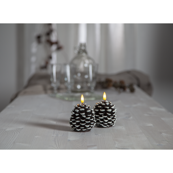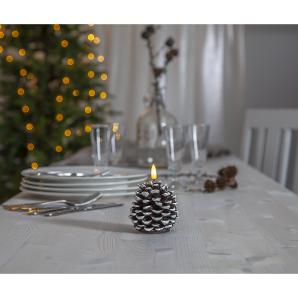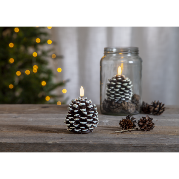 Sukurkite jaukią ir natūralią atmosferą su LED žvake „Flamme Kotte“ – tai šilta, švytinti kankorėžio formos žvakė, puikiai tinkanti žiemos, Kalėdų ar miško įkvėptam interjerui.
