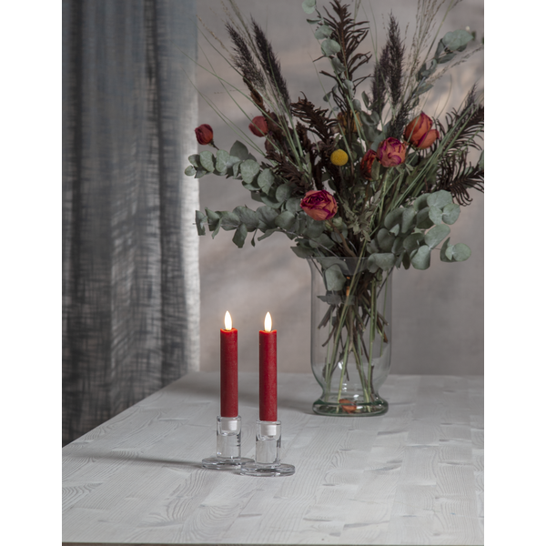 Raudonos spalvos žvakės sukuria šventišką nuotaiką, o modernus LED sprendimas leidžia mėgautis šviesa be atviros ugnies, dūmų ar varvančio vaško.