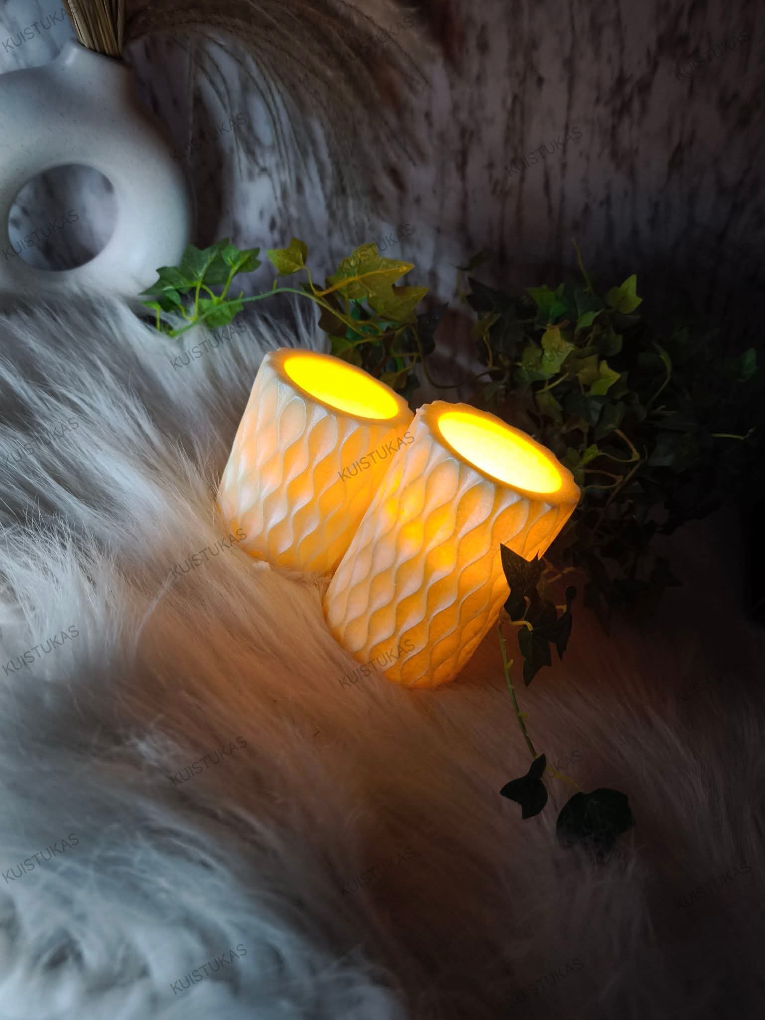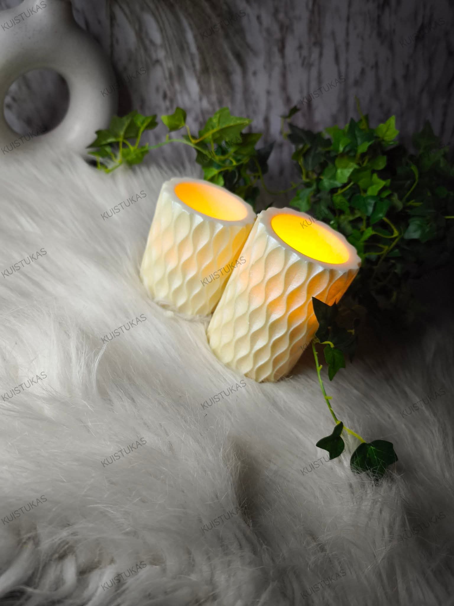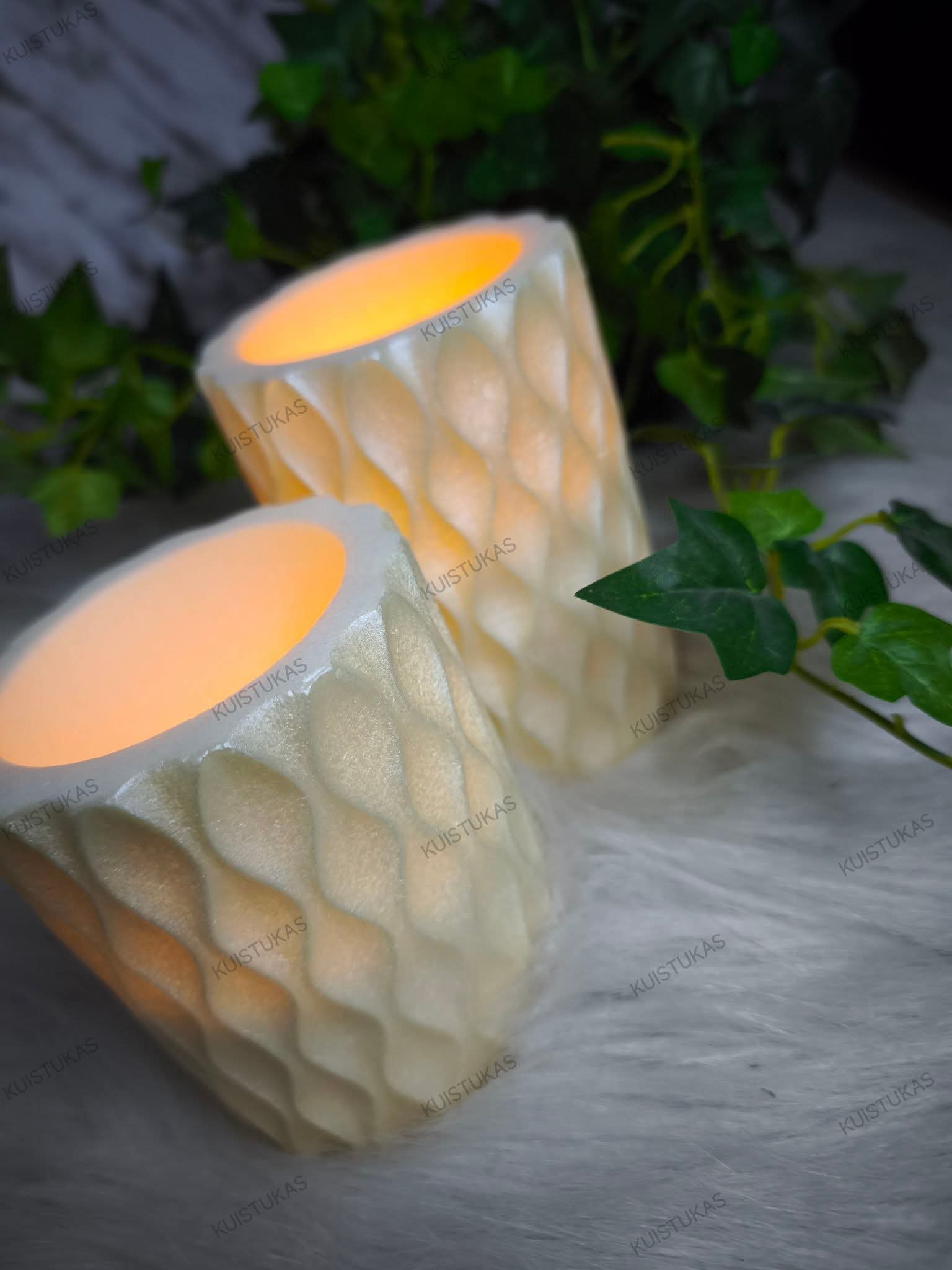 Kiekviena žvakė turi švelniai banguotą, dekoratyvų paviršių, kuris suteikia papildomo vizualinio žavesio – jos puikiai tiks ne tik kasdieniam naudojimui, bet ir šventinėms progoms: vestuvėms, Kalėdoms, romantiškiems vakarams ar fotosesijų dekorui.