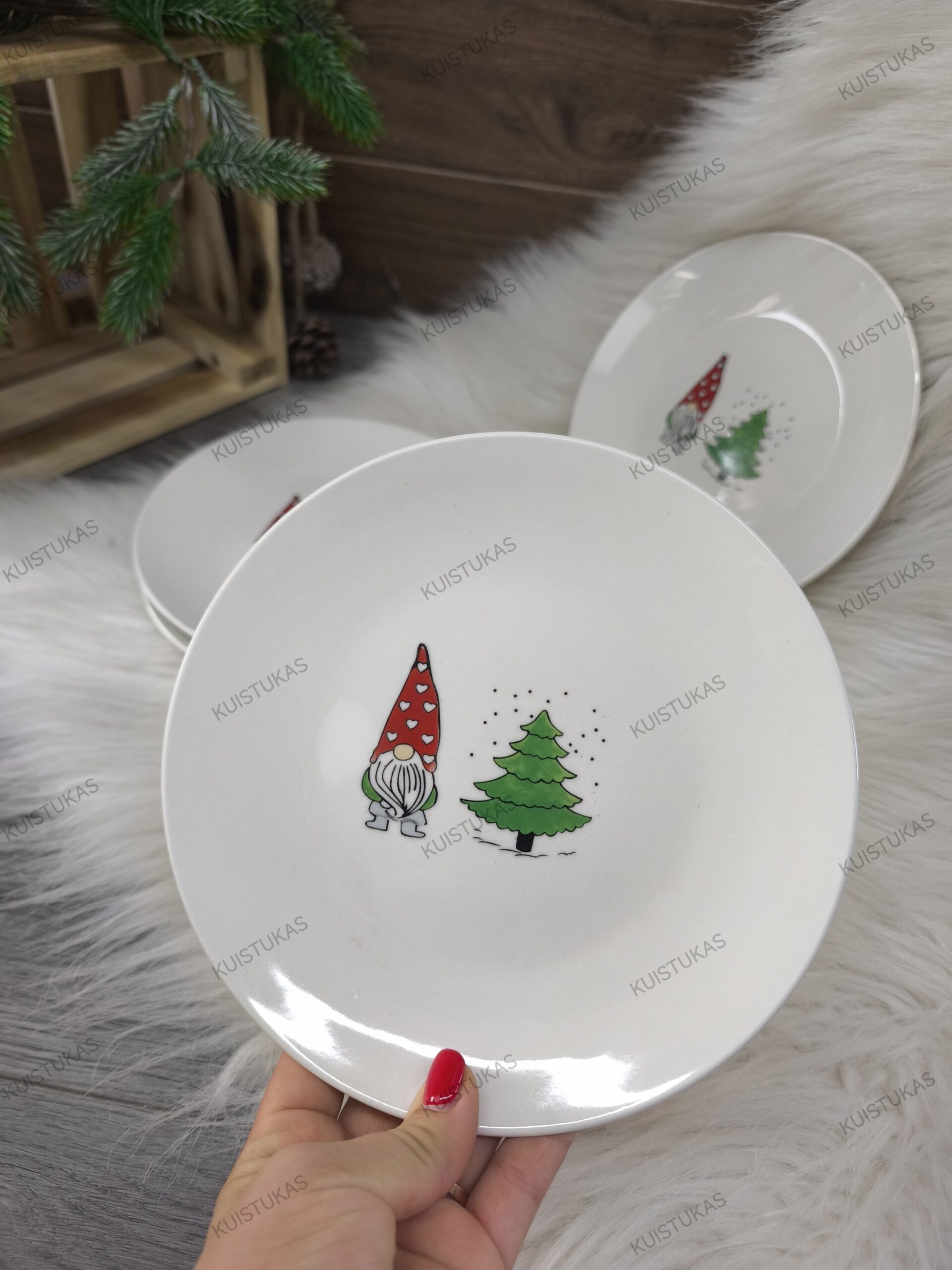 Šios lėkštės ne tik funkcionalios, bet ir išskirtinai dekoruotos nykštuko bei eglutės motyvu, kuris simbolizuoja Kalėdų dvasią, šeimos bendrystę ir džiaugsmą.