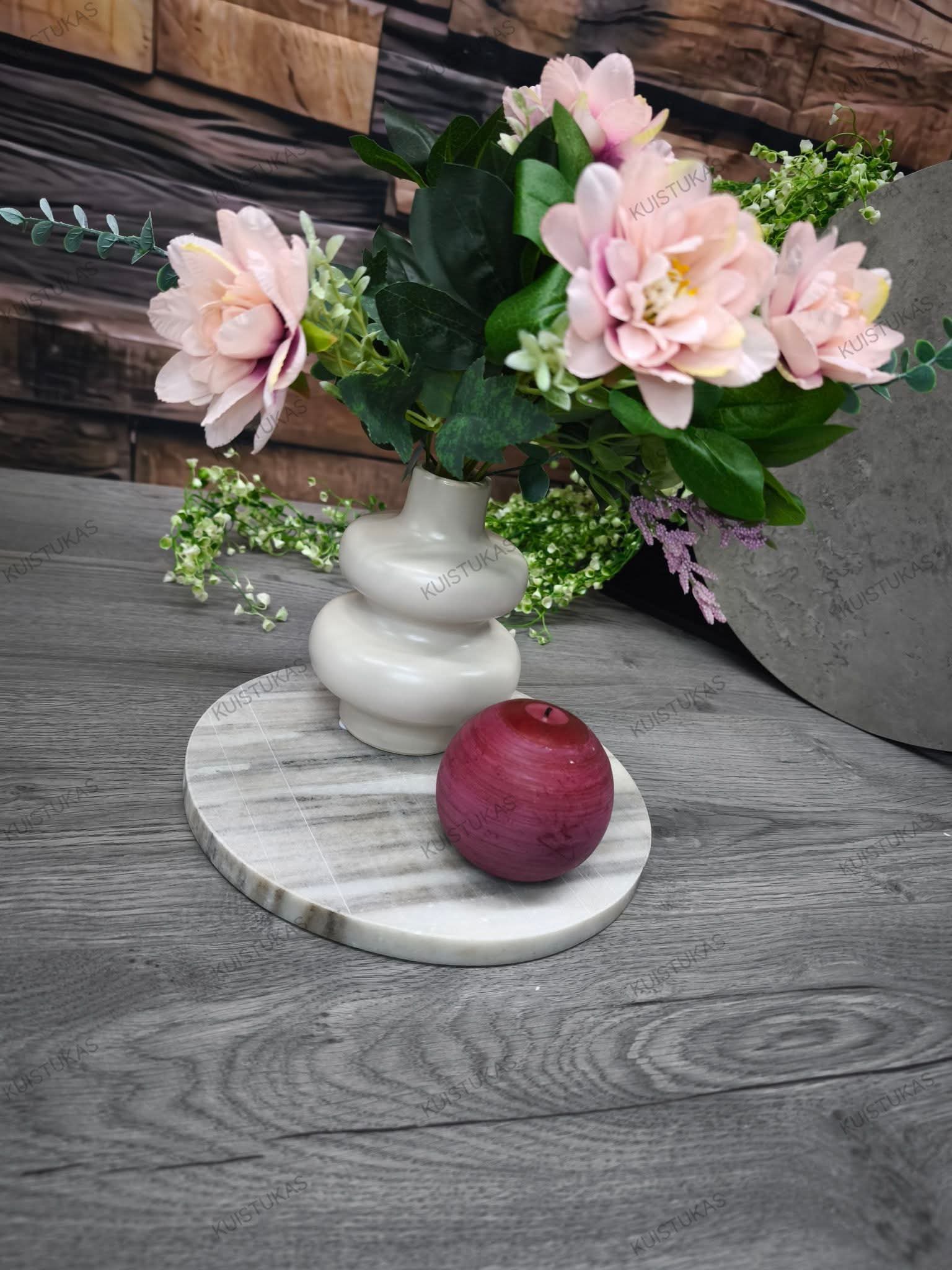Šis marmurinis padėkliukas gali būti naudojamas įvairiais būdais: kaip pagrindas žvakėms, gėlėms, desertams ar užkandžiams patiekti, taip pat kaip dekoratyvinės platformos mėgstamiems interjero akcentams eksponuoti.