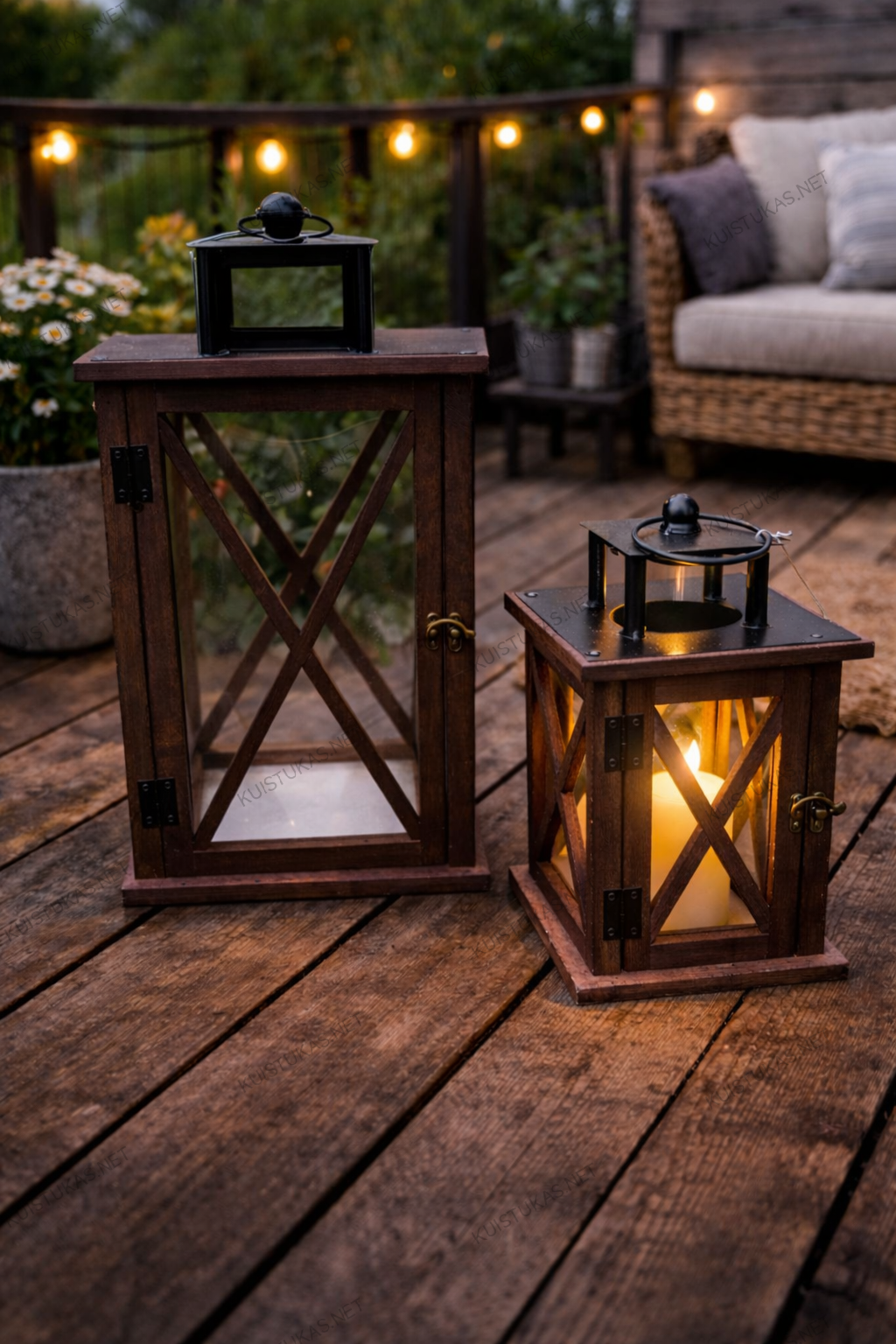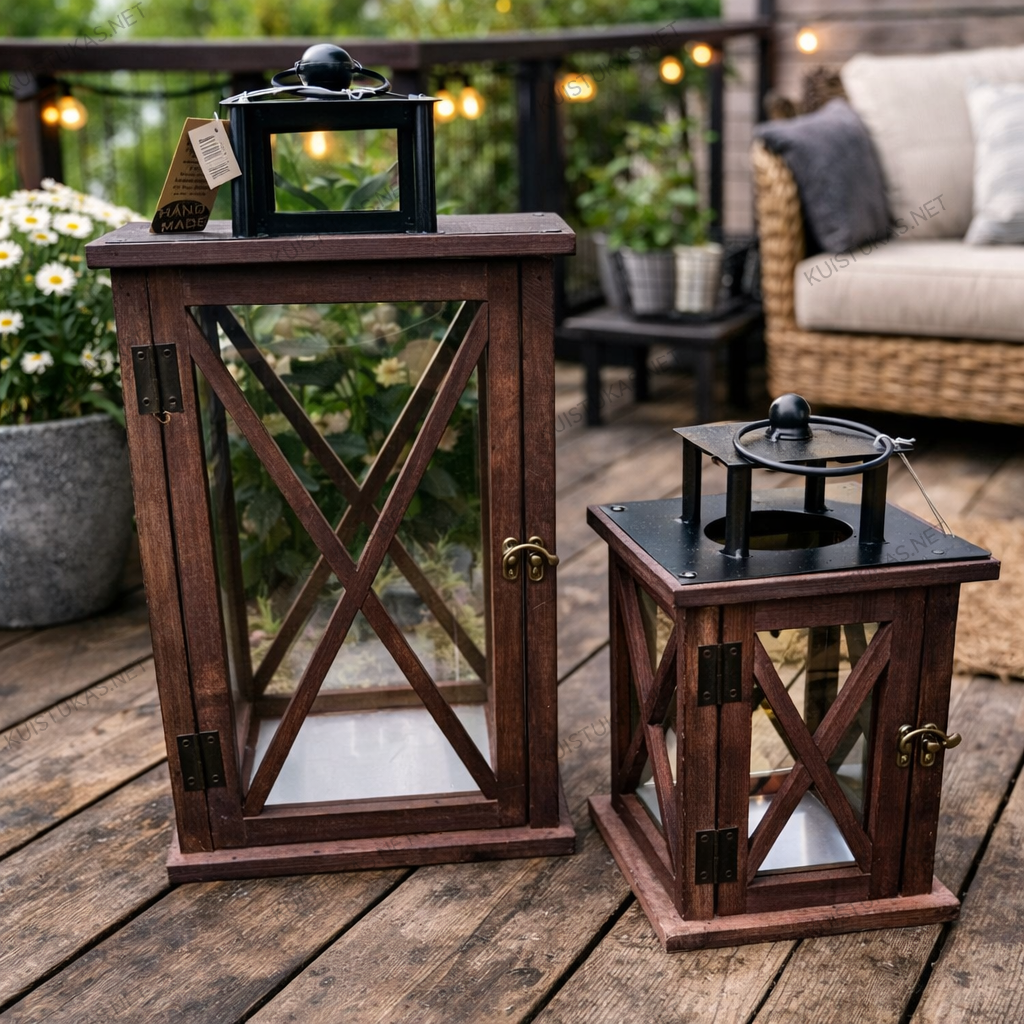 Medinių žibintų komplektas ne tik gražus, bet ir funkcionalus – tvirtos medžiagos ir klasikinis dizainas garantuoja ilgaamžiškumą ir universalumą.