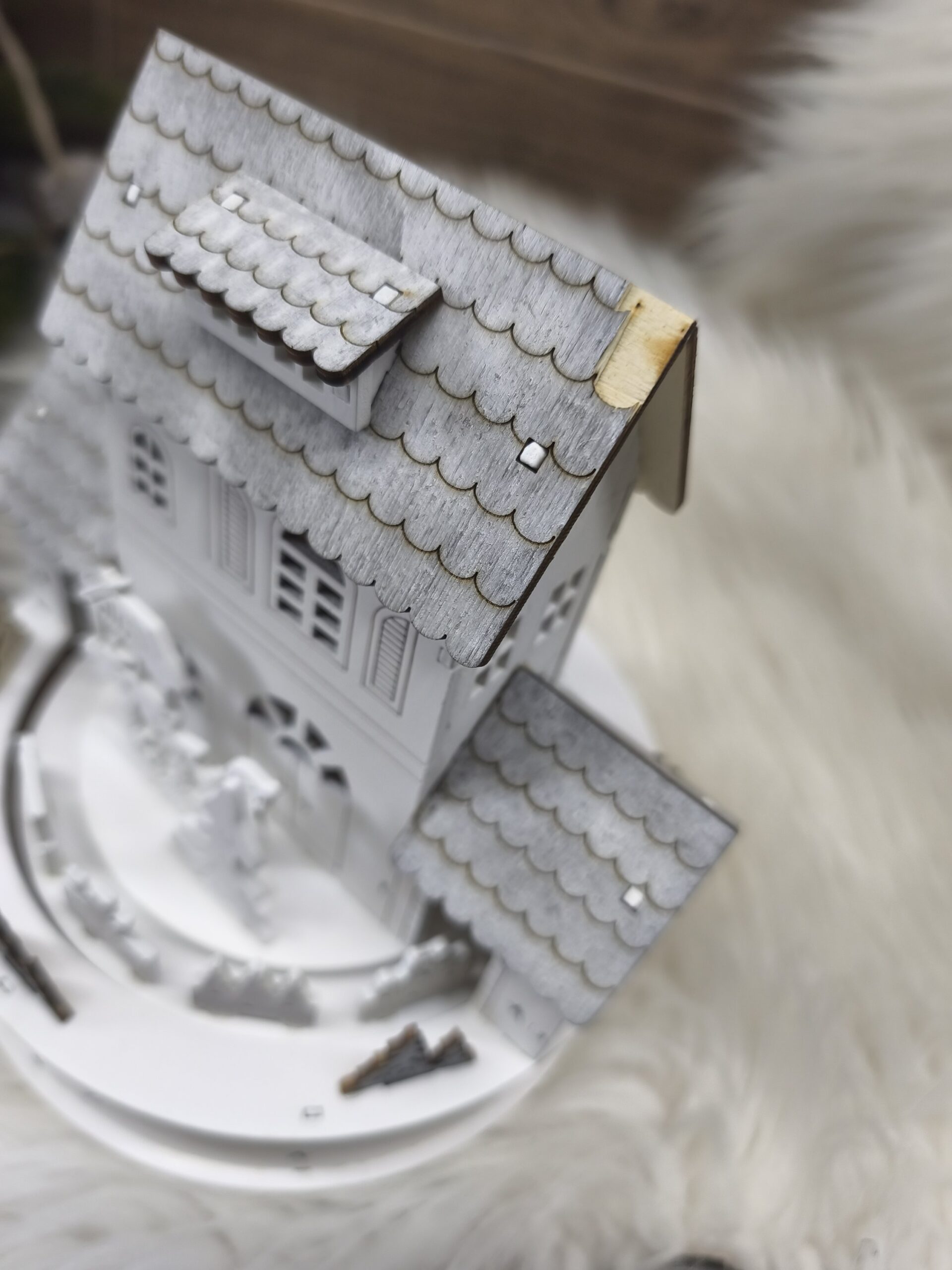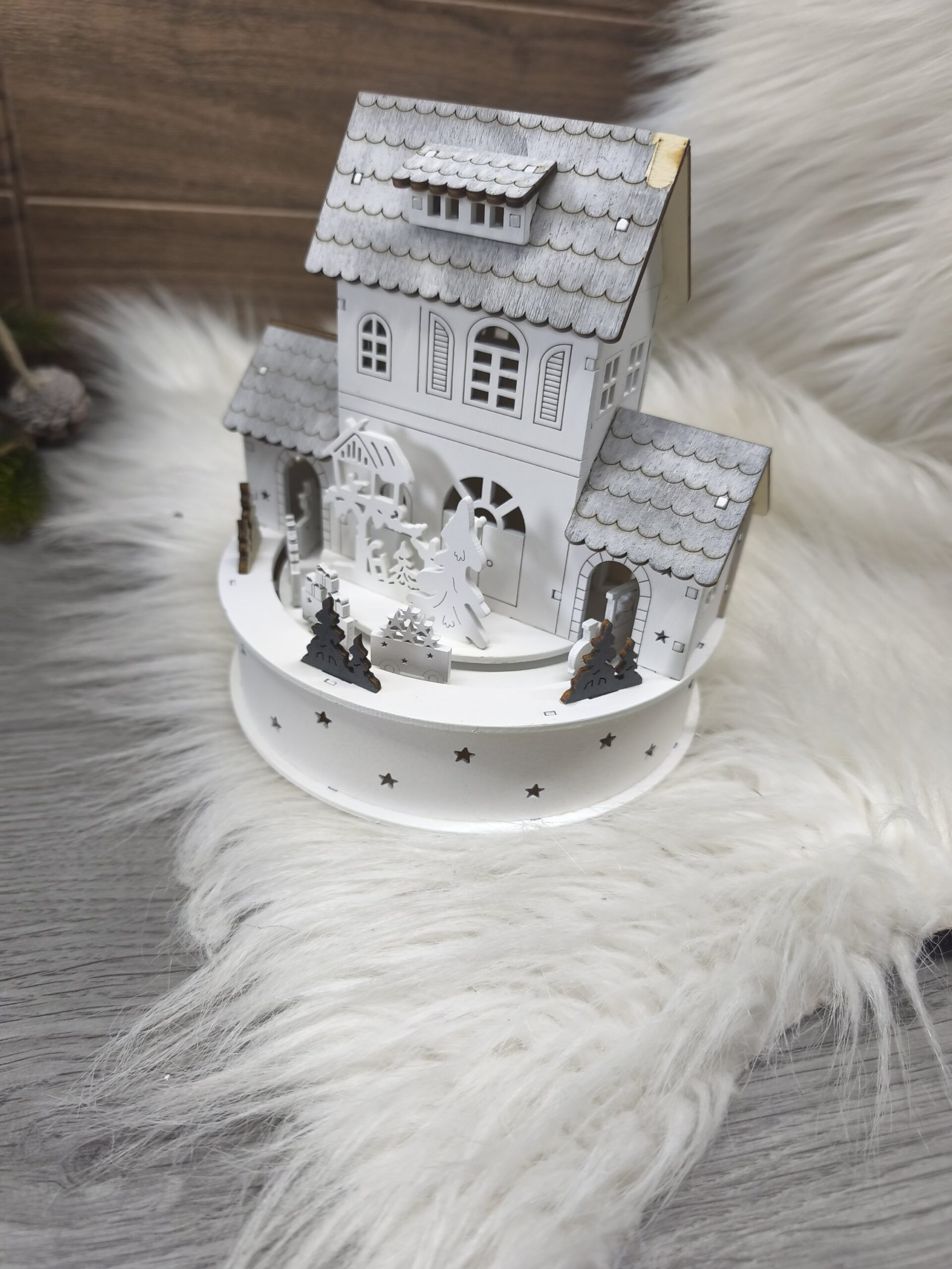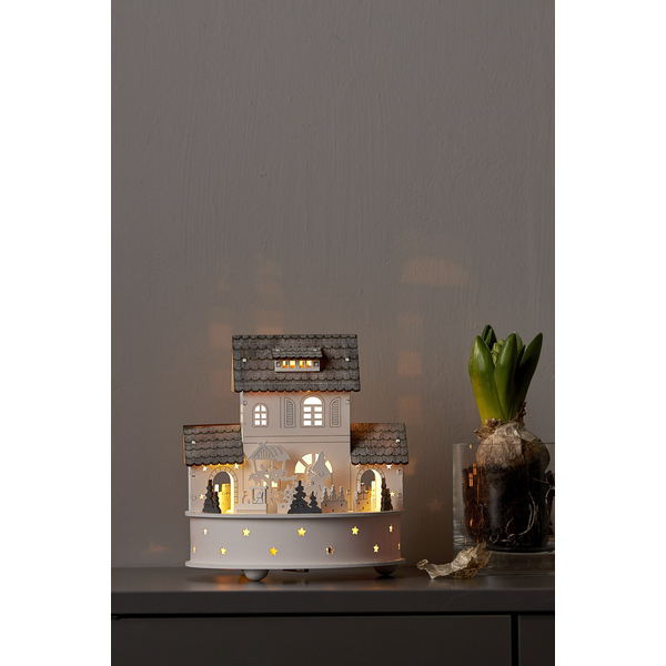 Šis namelis ne tik puošia interjerą, bet ir užburia savo šviesomis, melodija bei smulkiai išraižytomis detalėmis.