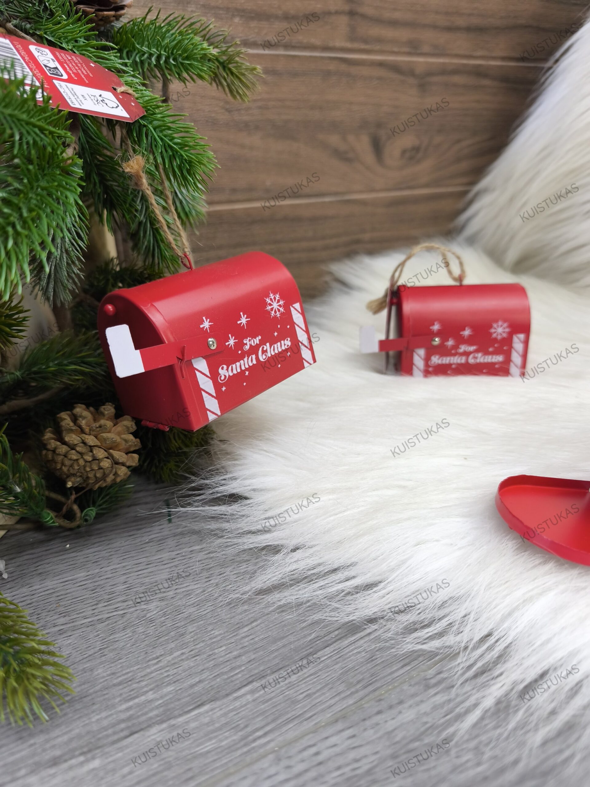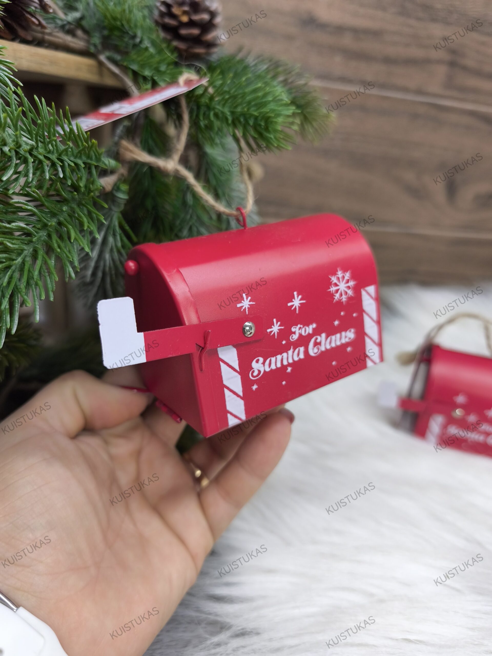 Tai žaisminga, raudona pašto dėžutės formos dekoracija, kuri puikiai įsilies į jūsų šventinį interjerą.