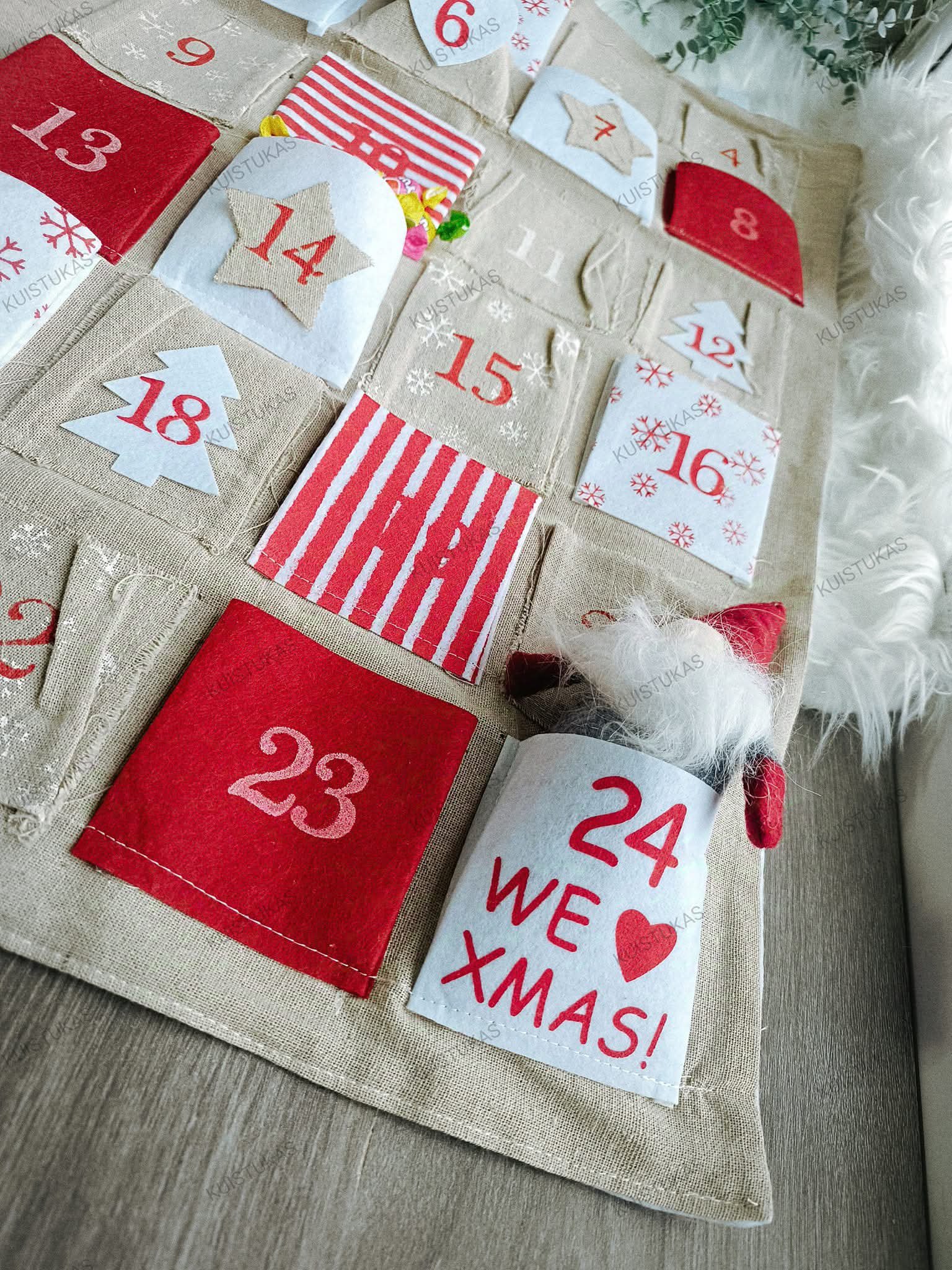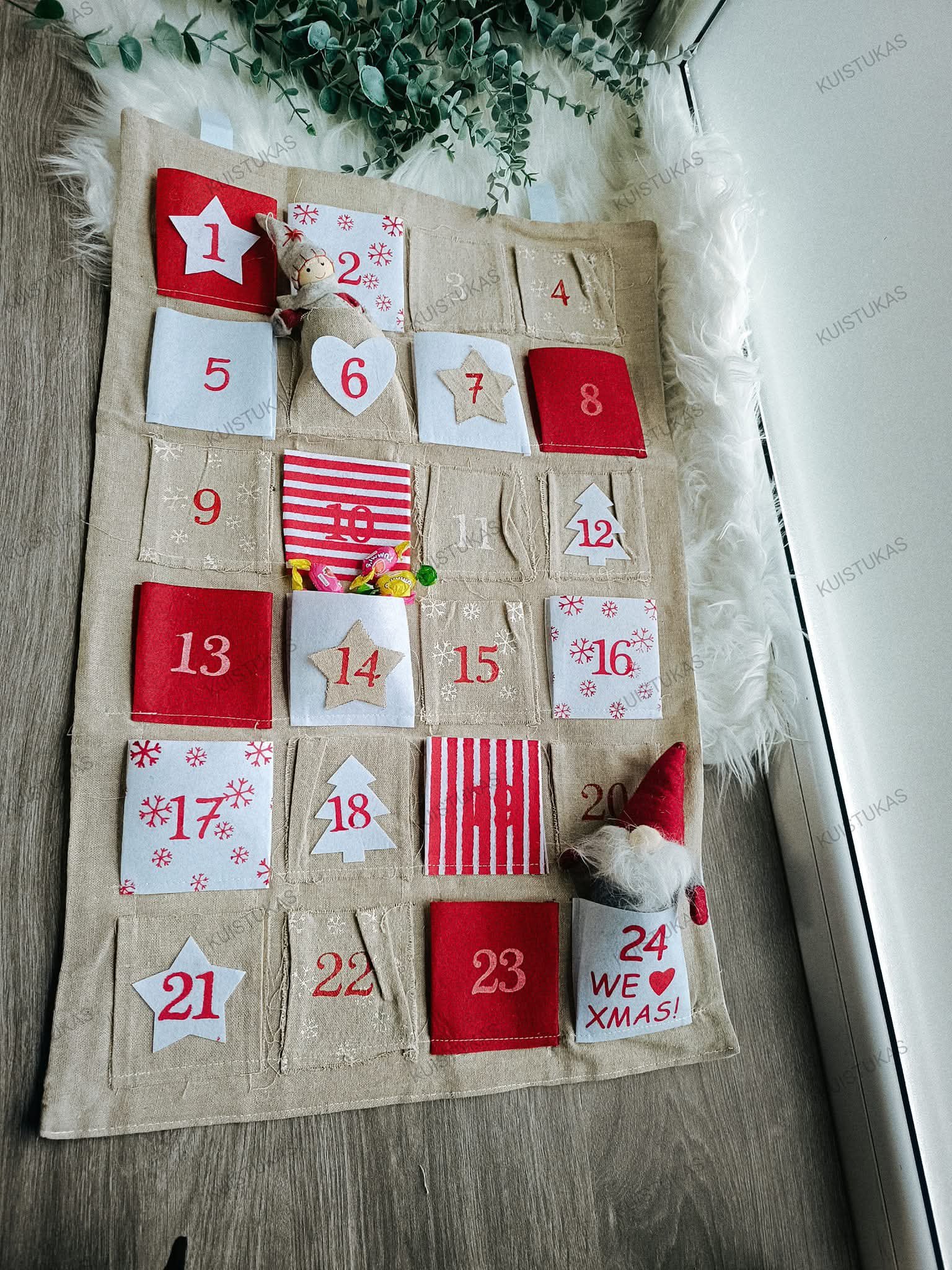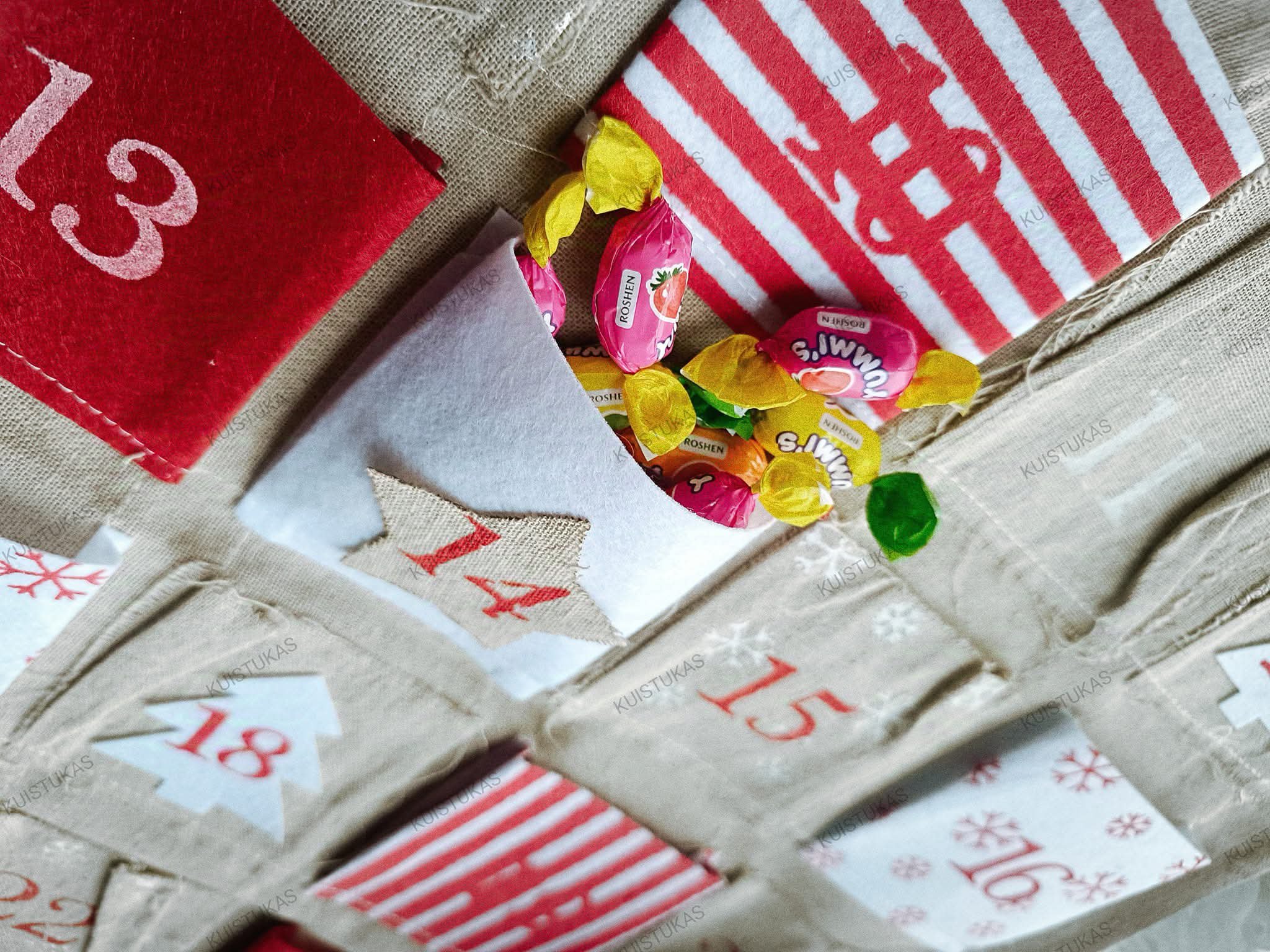 Galite patys nuspręsti, kuo užpildysite 24 kišenėles – nuo šokoladinių saldainių iki simbolinių dovanėlių ar ranka rašytų palinkėjimų.