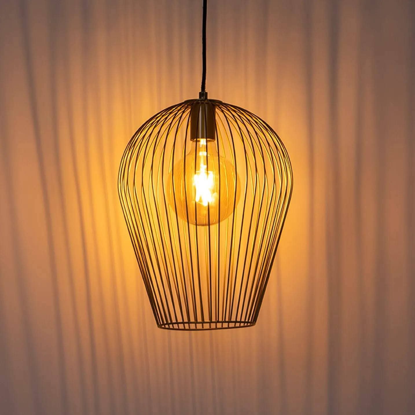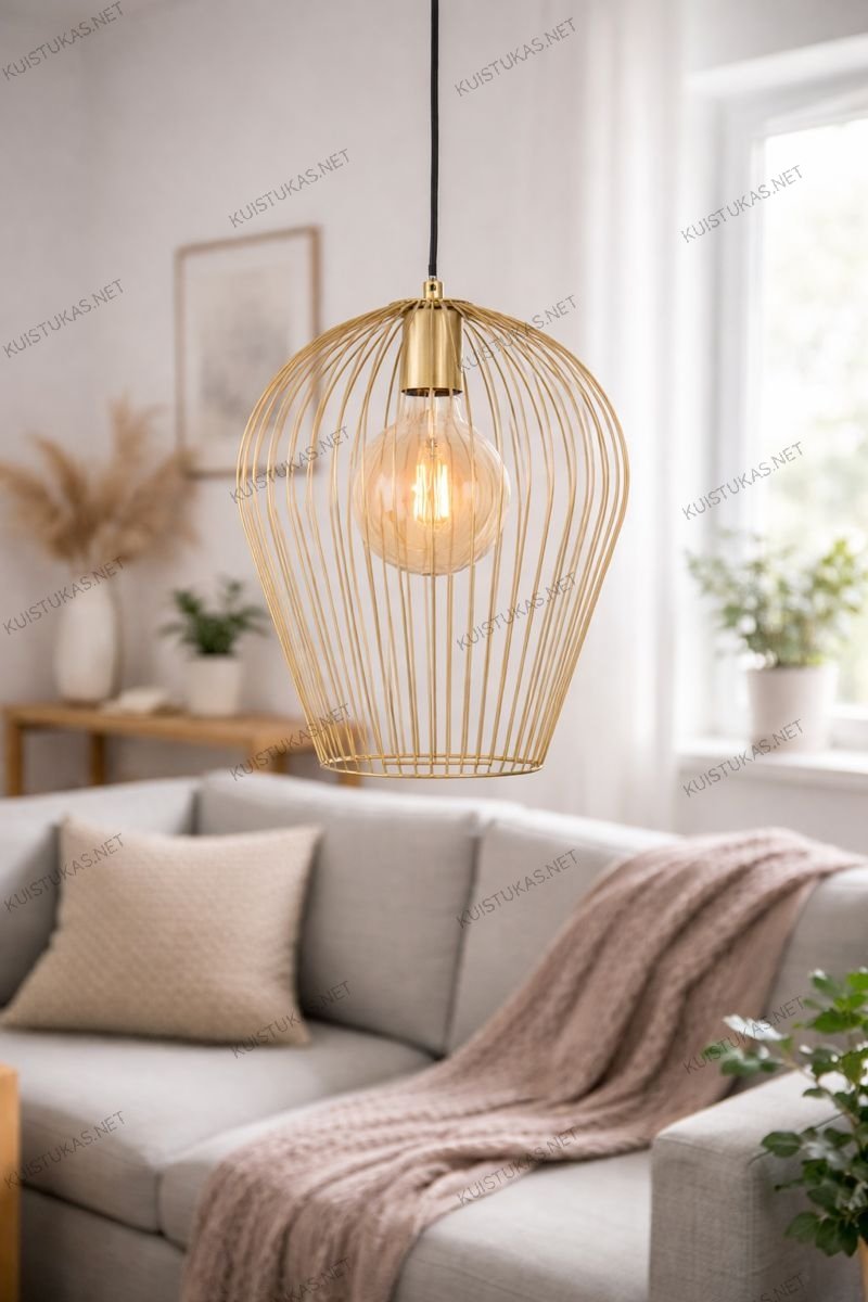 Jo unikalus metalinių vielų dizainas ne tik atskleidžia lemputės šviesą visu grožiu, bet ir kuria įspūdingus šešėlių raštus ant sienų, suteikdamas patalpai ypatingo jaukumo ir charakterio.