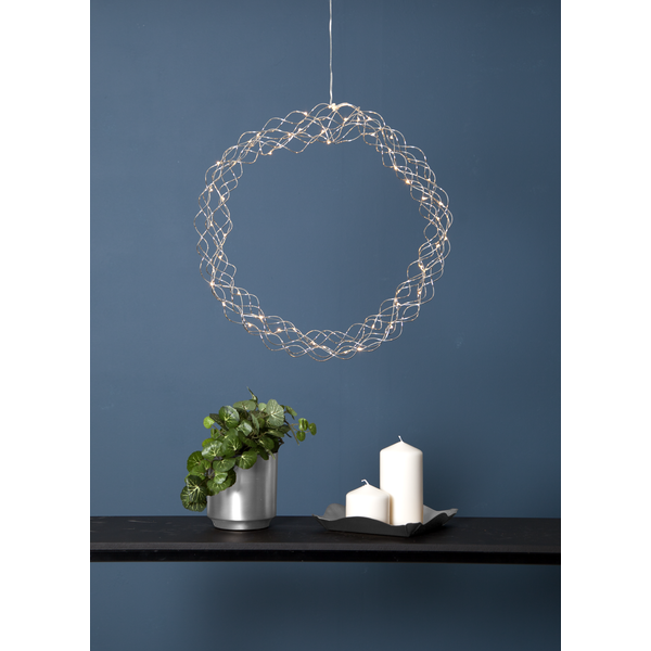 „Wreath Curly Chrom“ turi 30 arba 50 integruotų LED šviesos šaltinių, skleidžiančių šiltai baltą šviesą.